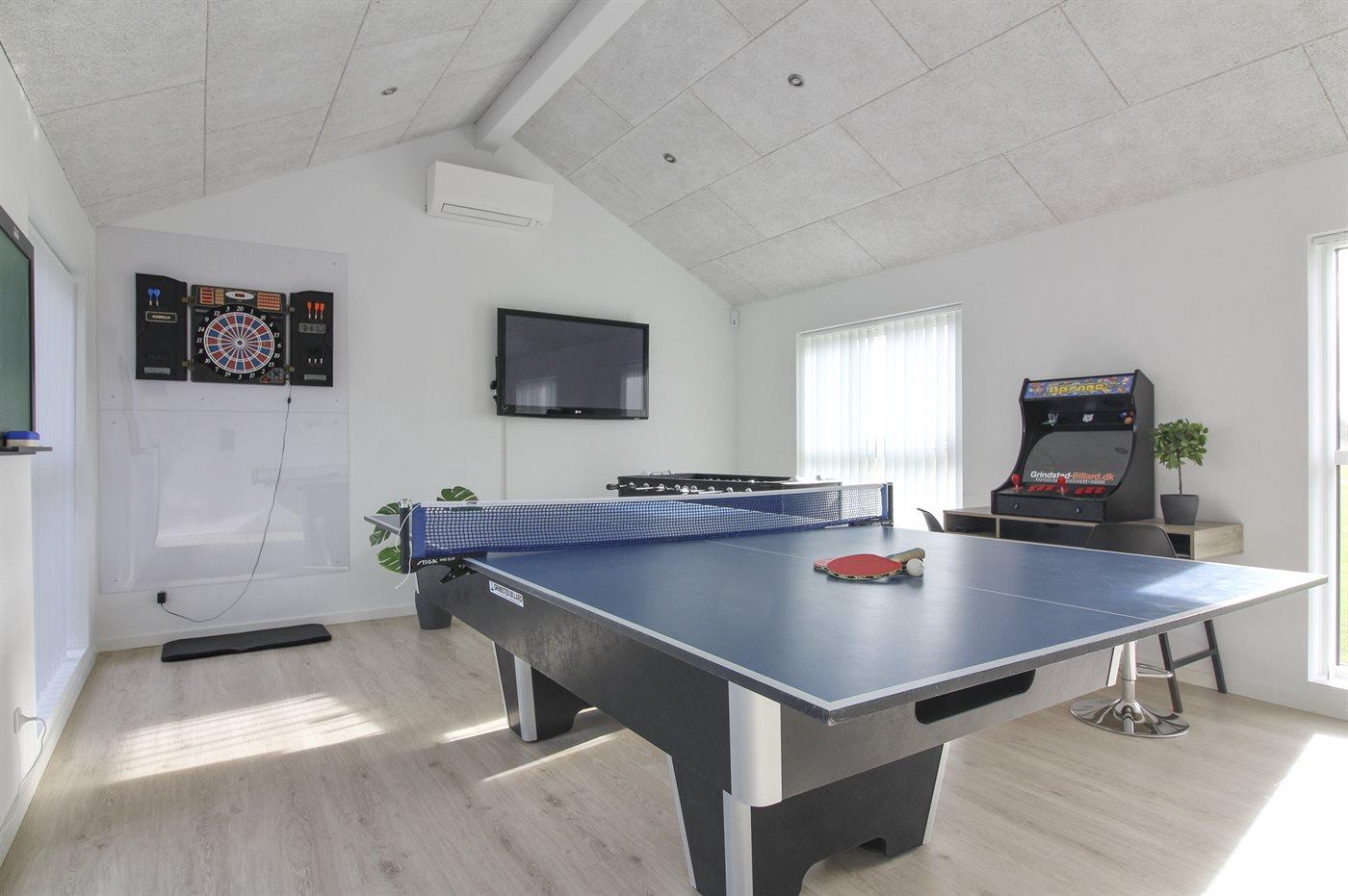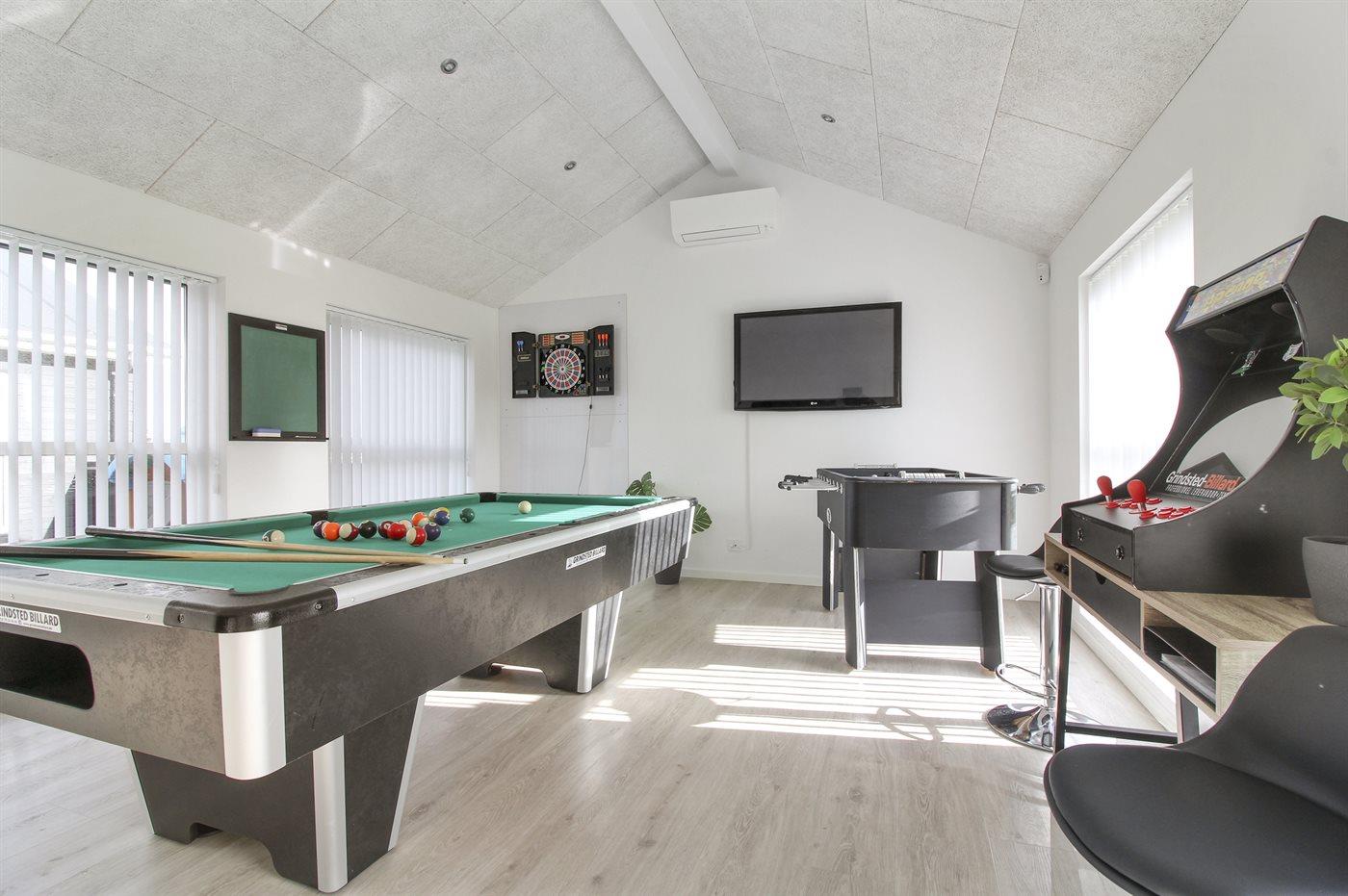 Activiteitenruimte. Pooltafe. Tafeltennis. Dart. Tafelvoetbal. Speelautomaat. Shuffleboard.