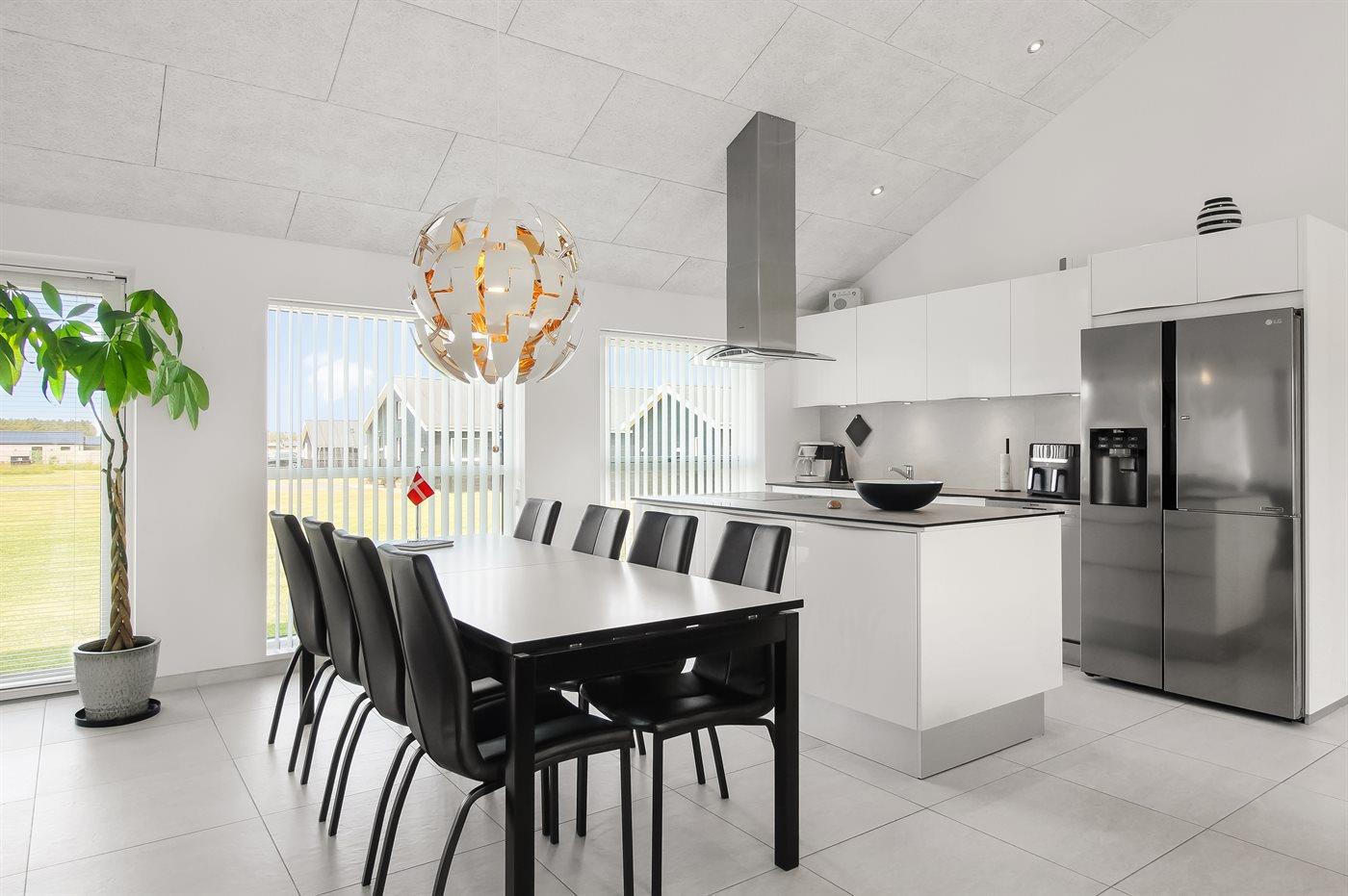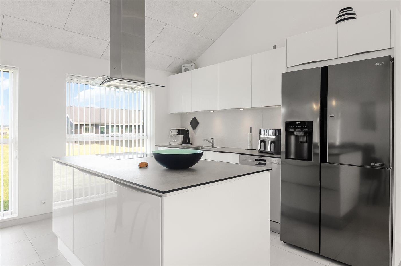 De keuken is uitgerust met amerikaanse koelkast Er is 4 inductiekookplaten, heteluchtoven, magnetron en vaatwasser.