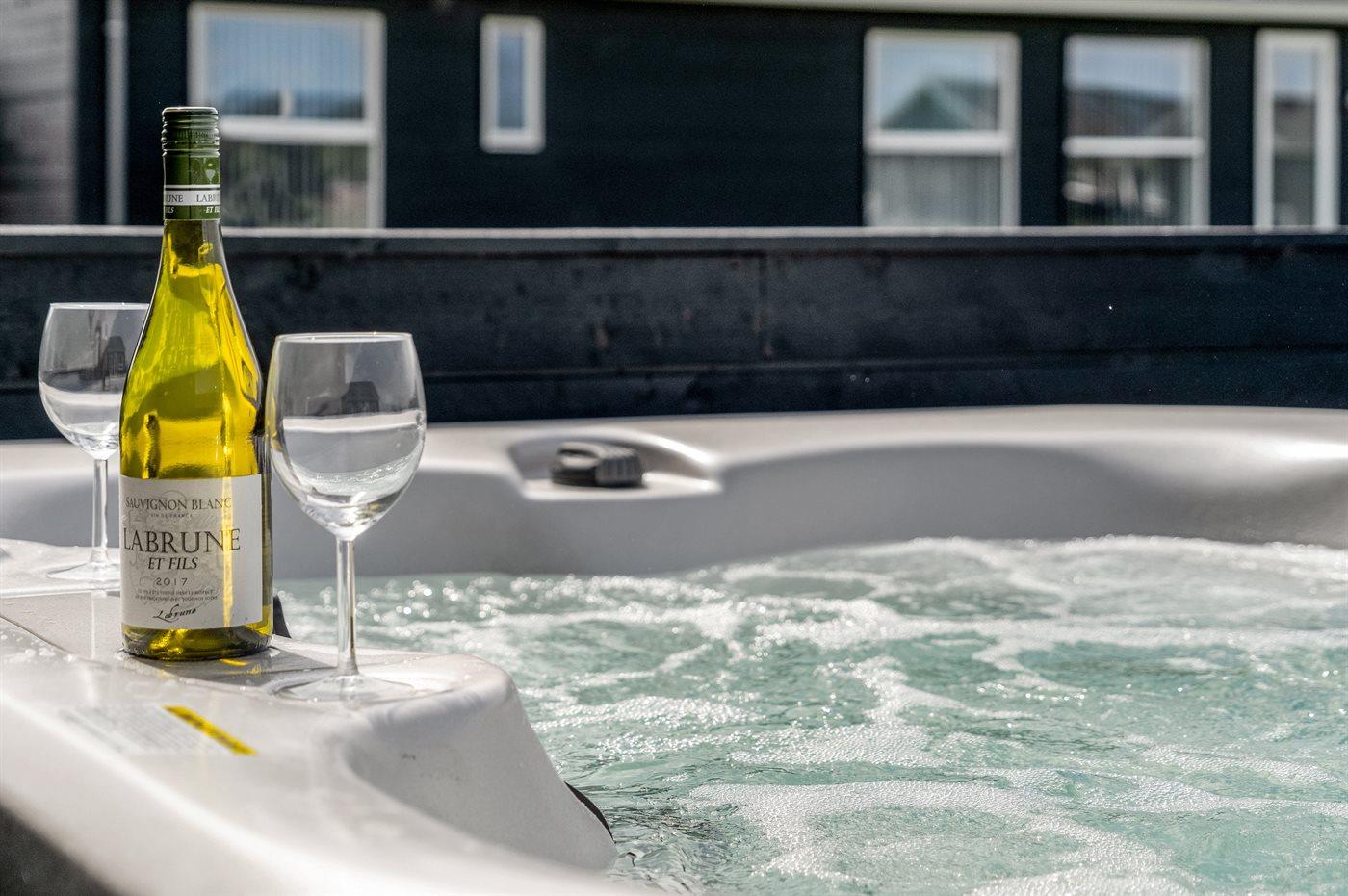 Het binnenbubbelbad (vulwater) biedt ontspanning aan 2 personen.Het buitenbubbelbad (standwater) biedt ontspanning aan 4 personen.