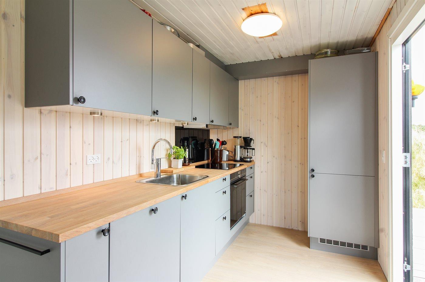 De keuken is uitgerust met koelkast Er is 4 inductiekookplaten, heteluchtoven, magnetron en vaatwasser.