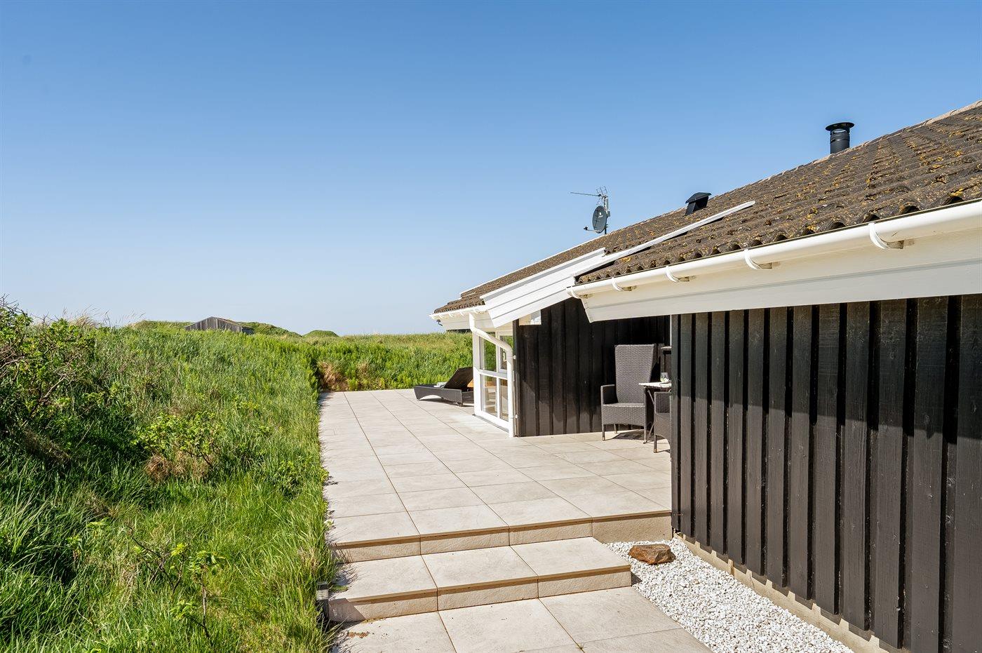De vakantiewoning is gelegen op een 3488 m² groot natuural grond. Afstand tot de zee 350 m. Dichtstbijzijnde winkel 2000 m. Bij de vakantiewoning hoort 30 m² terras. Daarnaast is er een 20 m² groot overdekt terras. Het huis heeft een stopcontact voor het opladen van een elektrische auto. Parkeerplaats bij het huis.