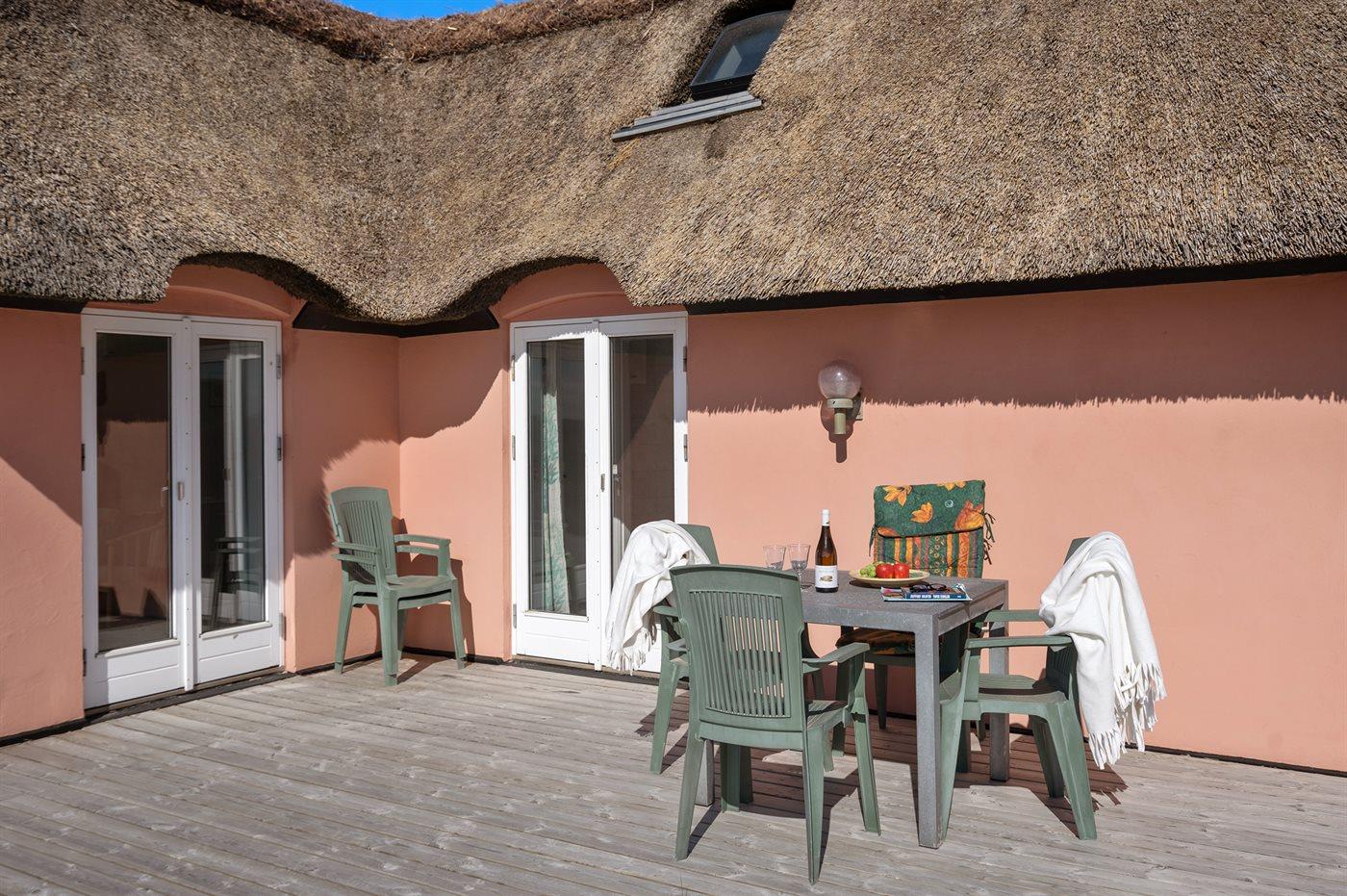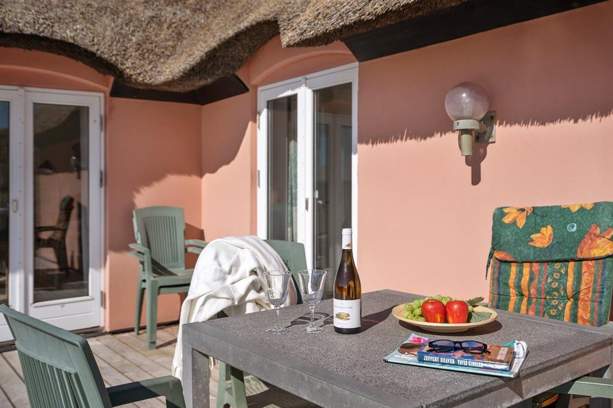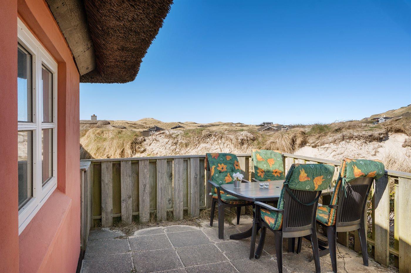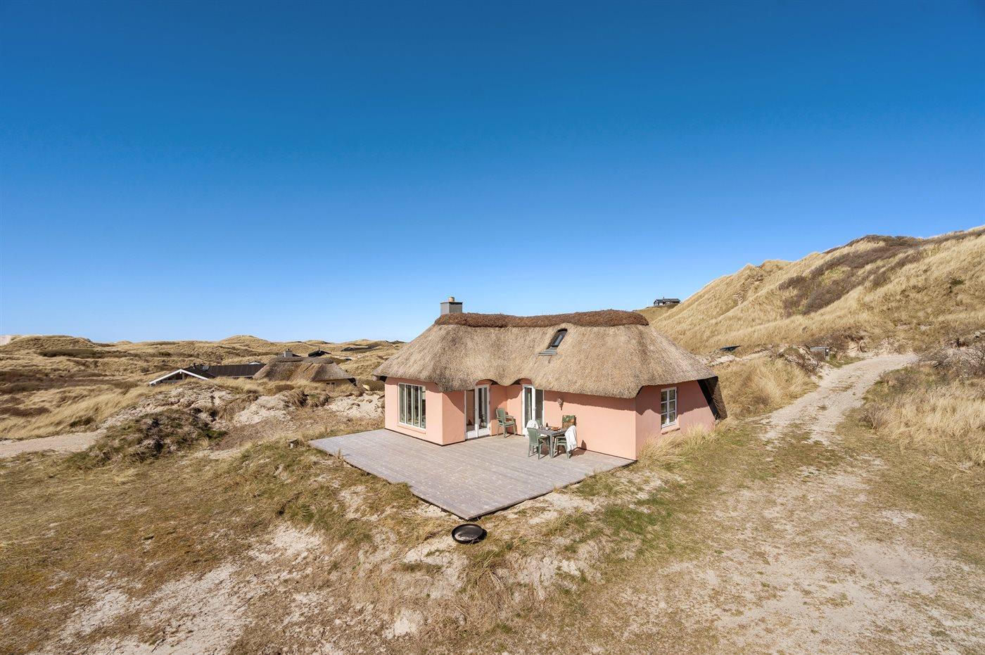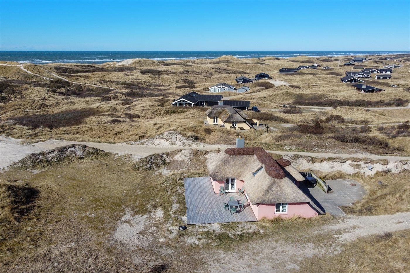 De vakantiewoning is gelegen op een 2500 m² groot Duingrond. Afstand tot de zee 150 m. Dichtstbijzijnde winkel 1500 m. Bij de vakantiewoning hoort 75 m² terras. Buitendouche. Parkeerplaats bij het huis.