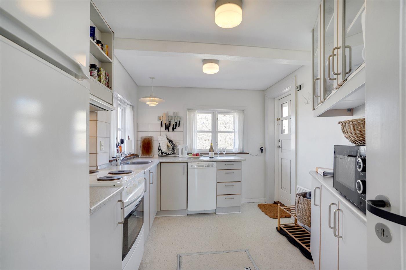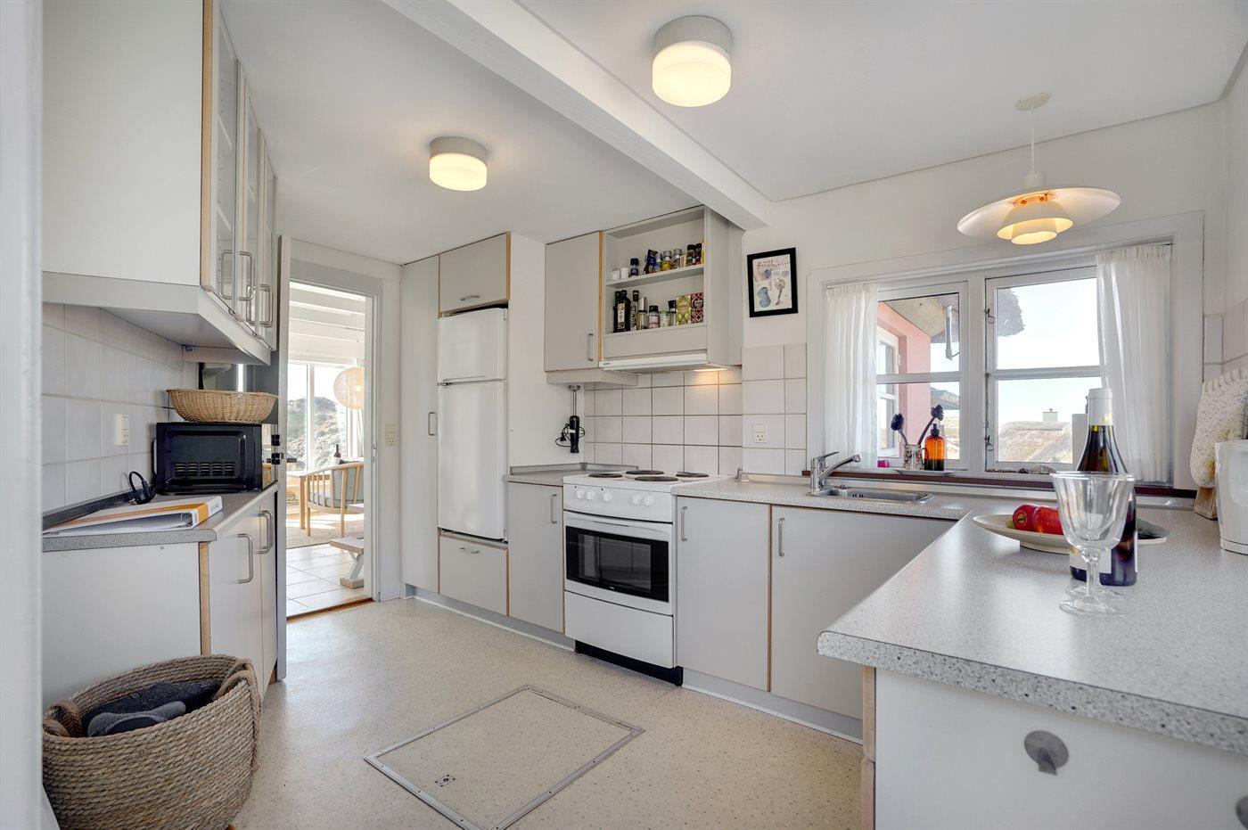 De keuken is uitgerust met koelkast Er is 4 elektrische kookplaten, heteluchtoven, magnetron en vaatwasser.