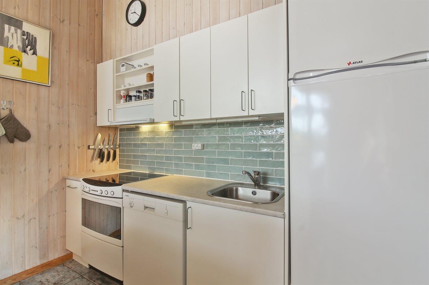 De keuken is uitgerust met koelkast Er zijn 4 keramische kookplaten, heteluchtoven, magnetron en vaatwasser.