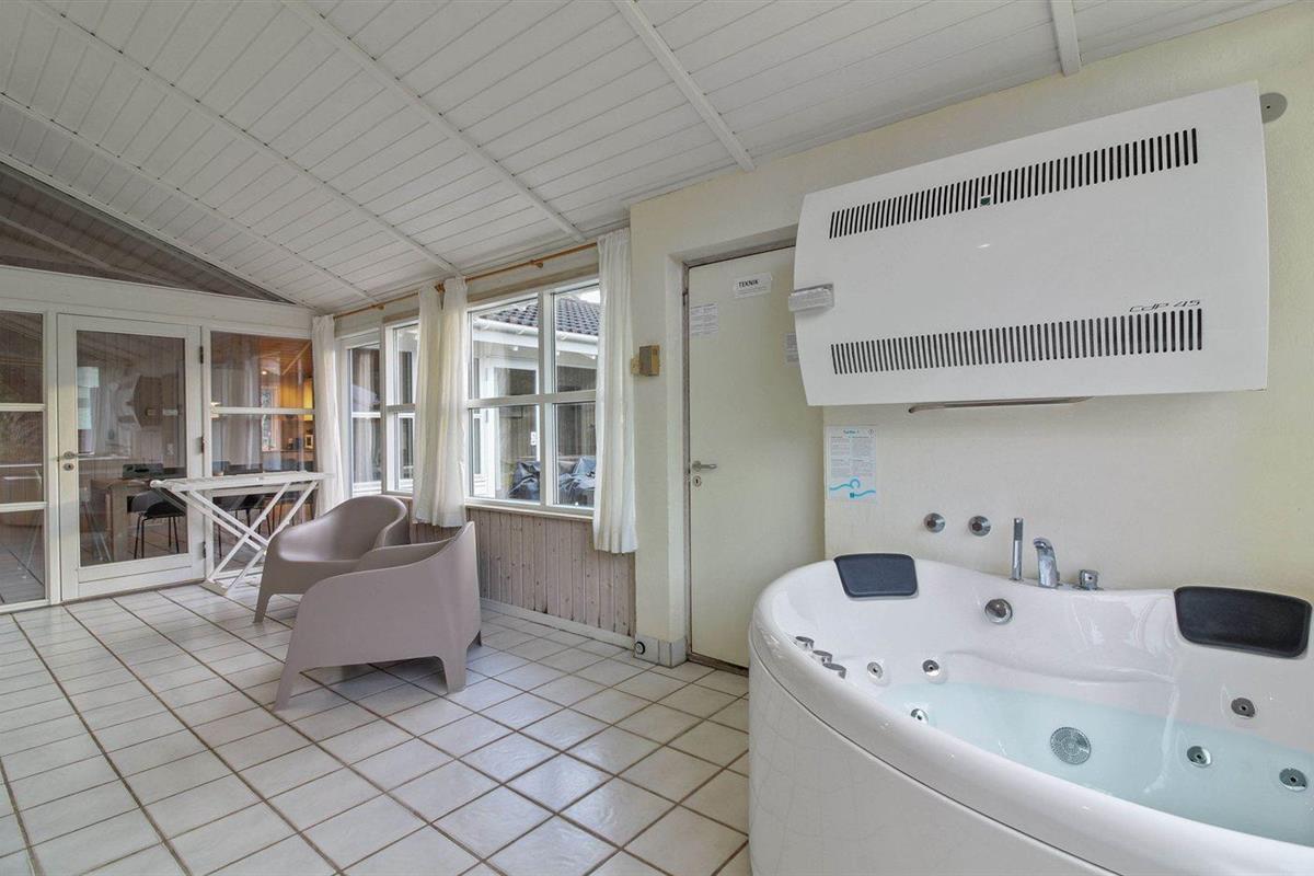 Het binnenbubbelbad (vulwater) biedt ontspanning aan 2 personen.