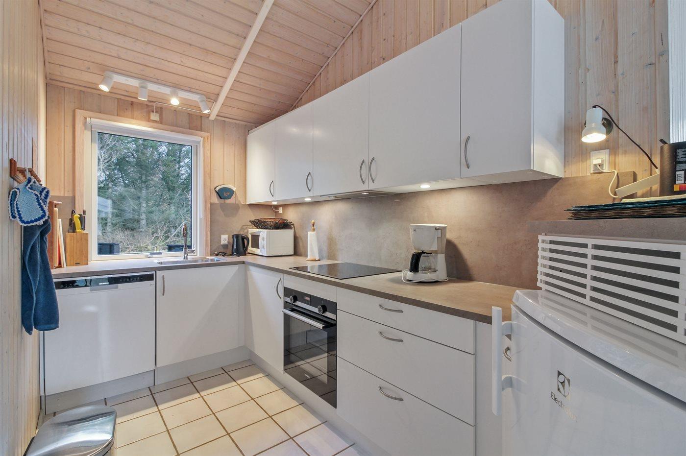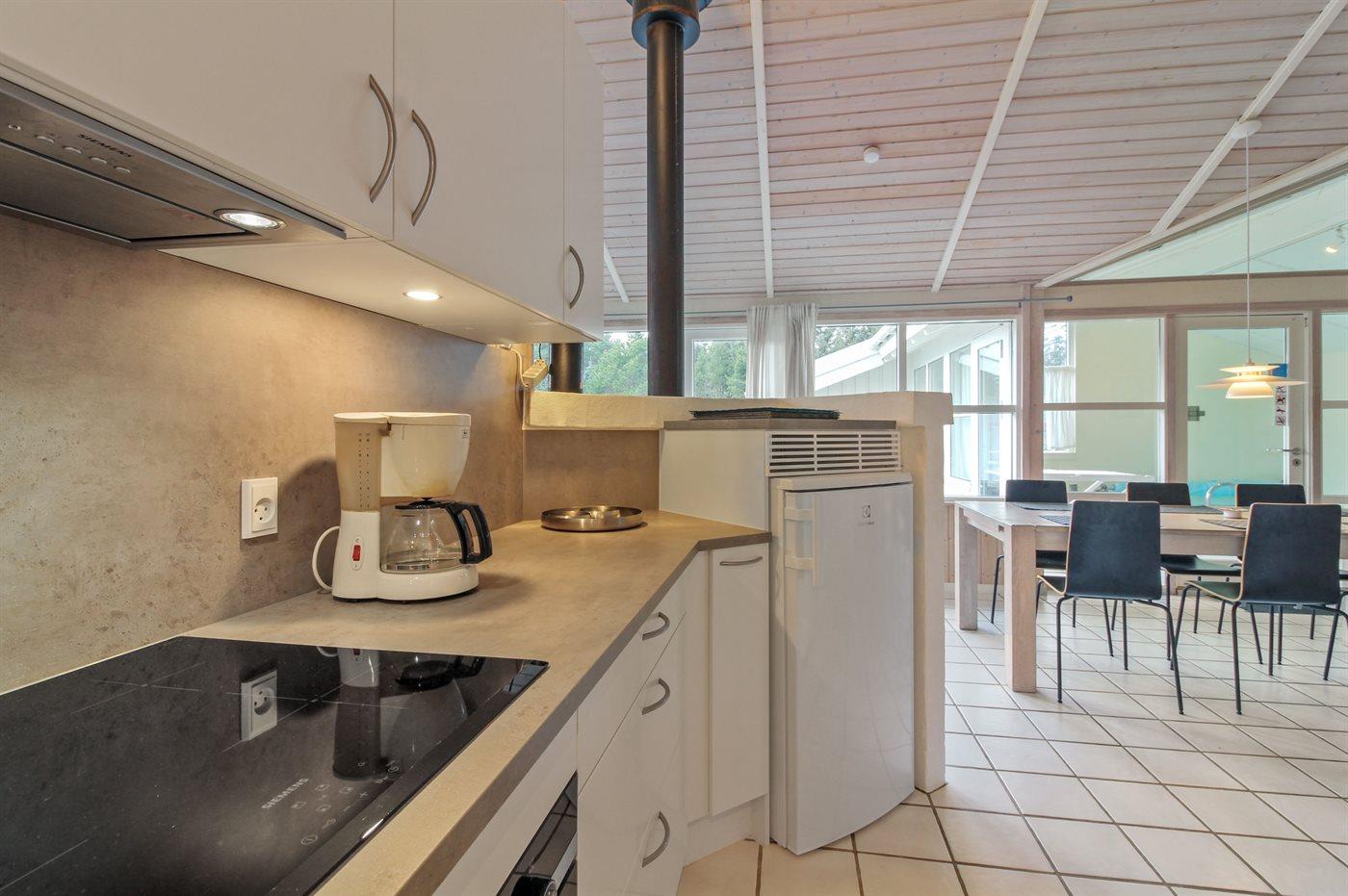 De keuken is uitgerust met koelkast Er is 4 inductiekookplaten, heteluchtoven, magnetron en vaatwasser.