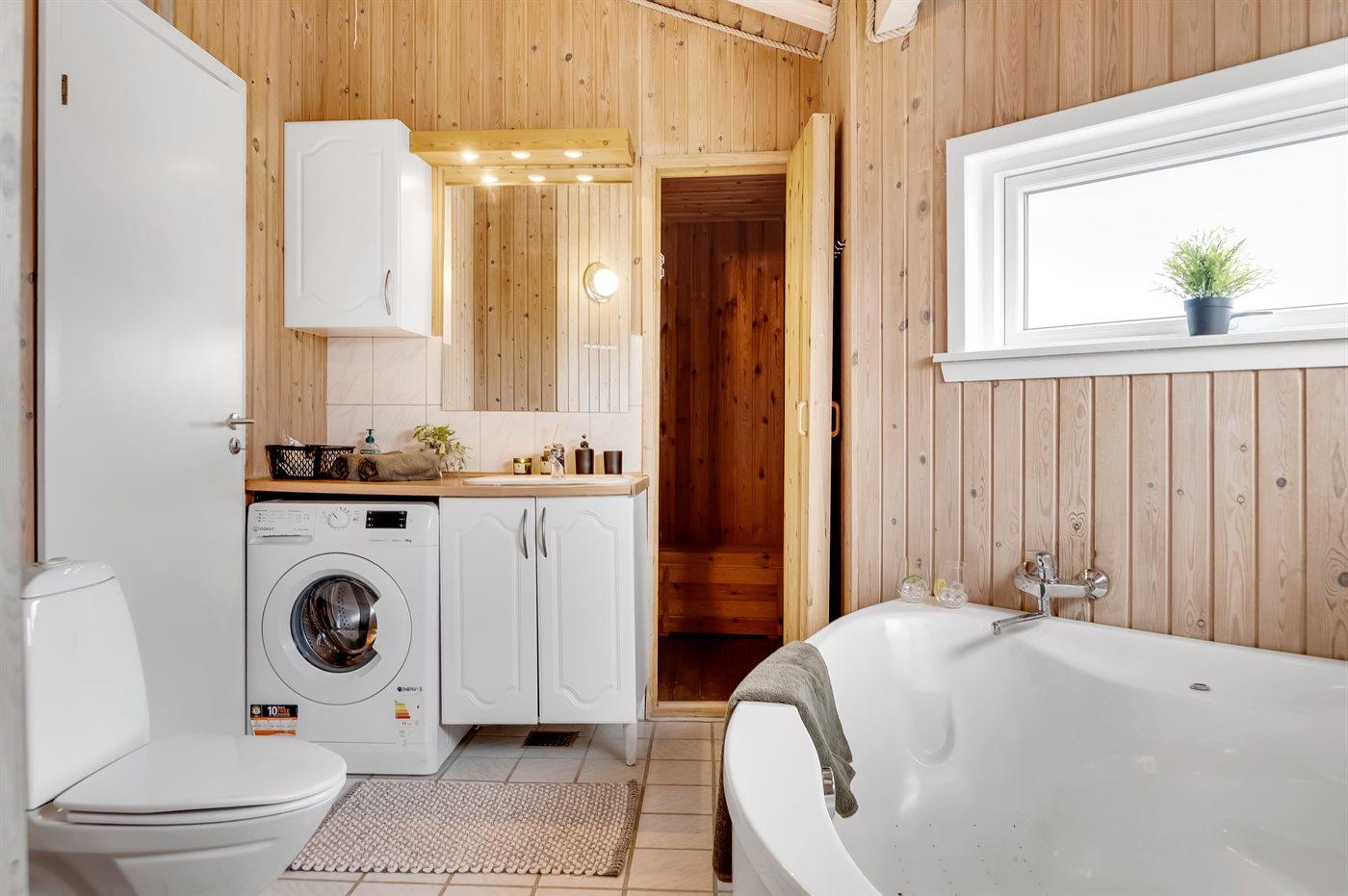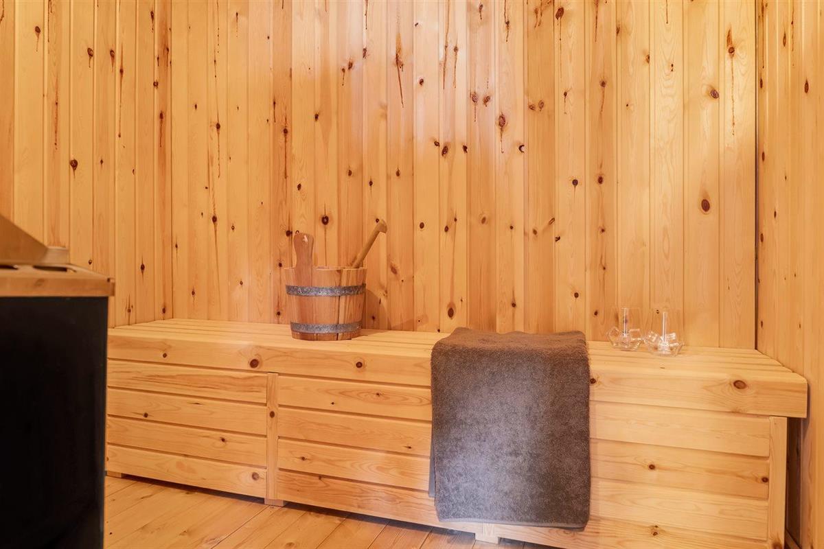 Er is 1 badkamer met douchehok en 2 toiletten, waarvan 1 gastentoilet. Er is vloerverwarming in 1 badkamer. De sauna biedt de gelegenheid tot ontspanning.