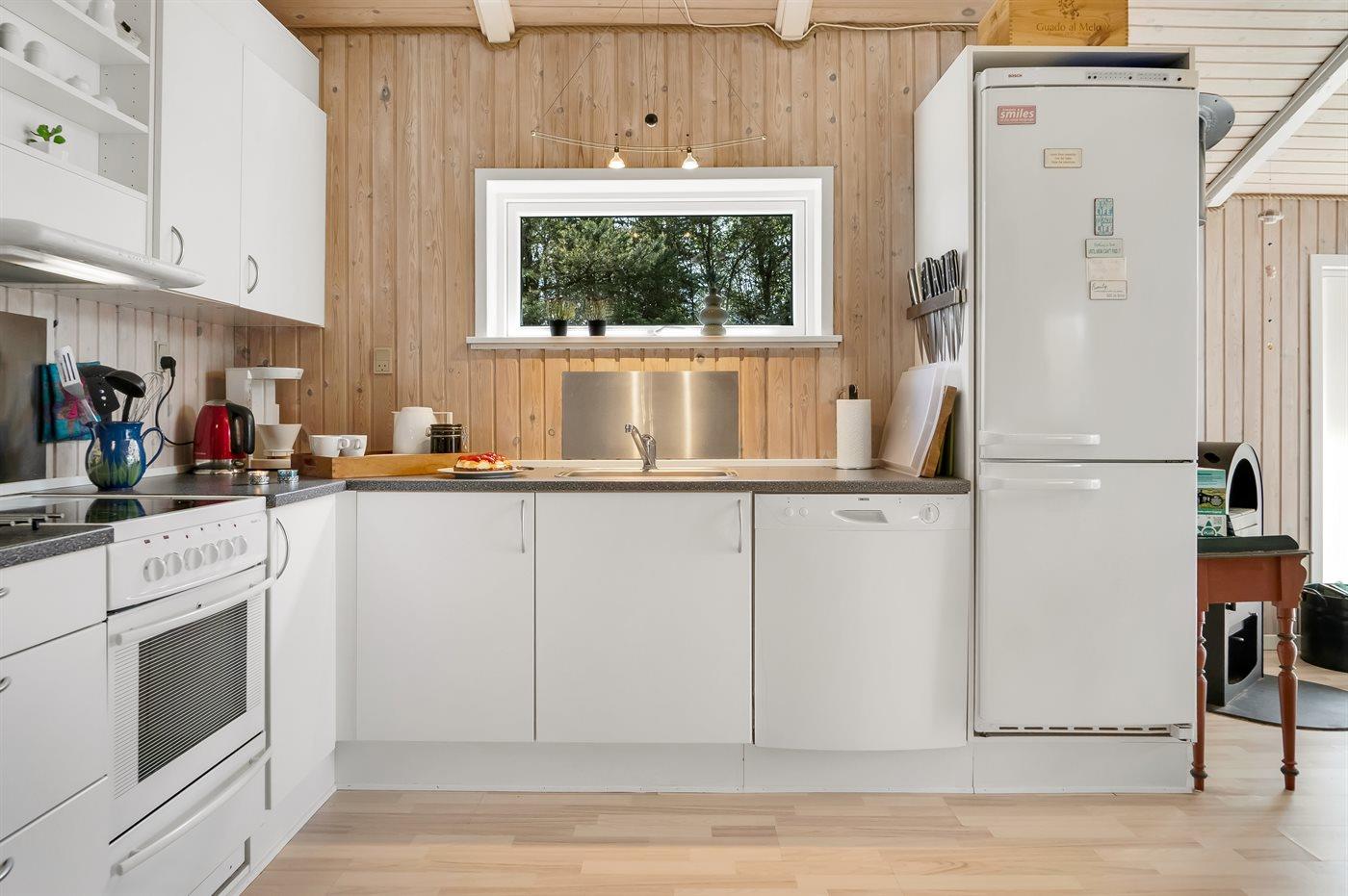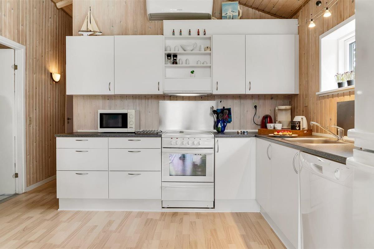 De keuken is uitgerust met koelkast Er zijn 4 keramische kookplaten, heteluchtoven, magnetron en vaatwasser.