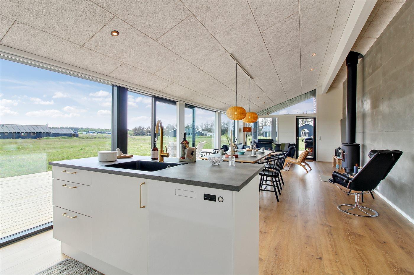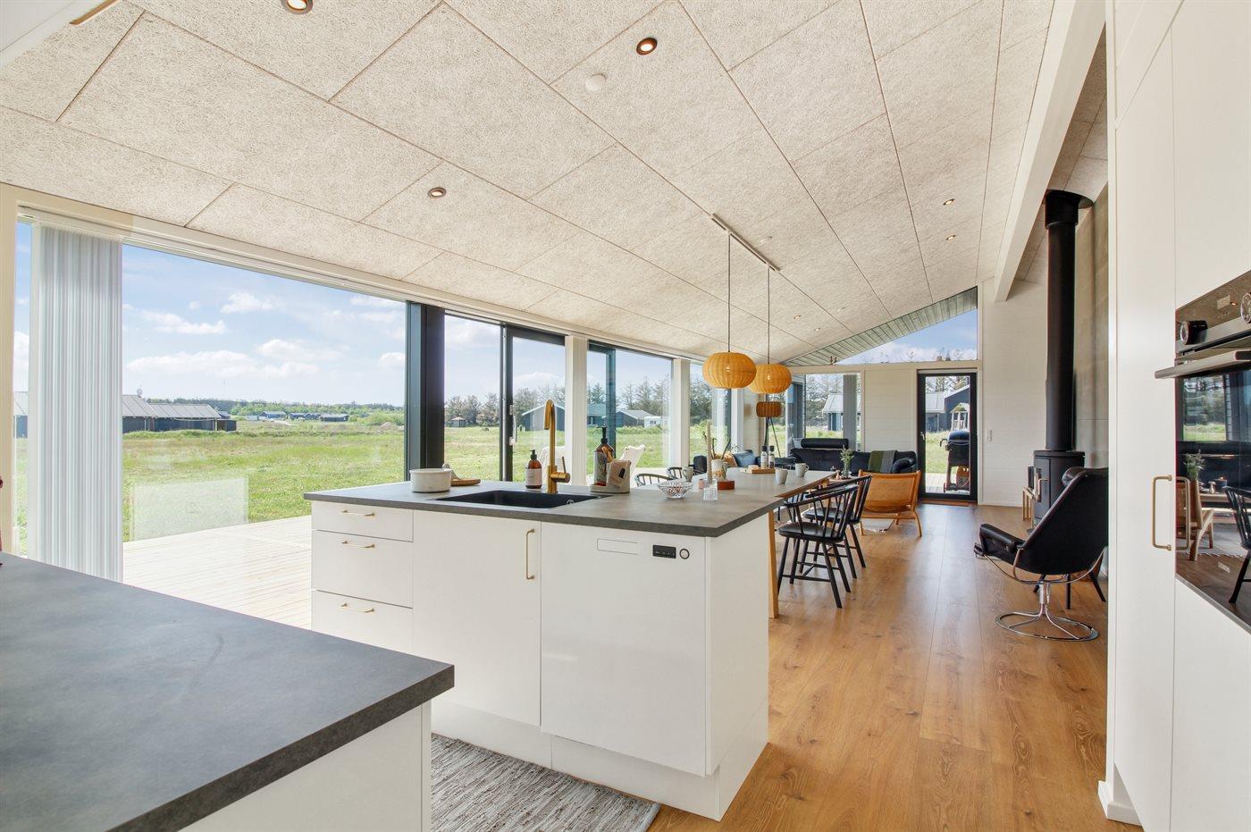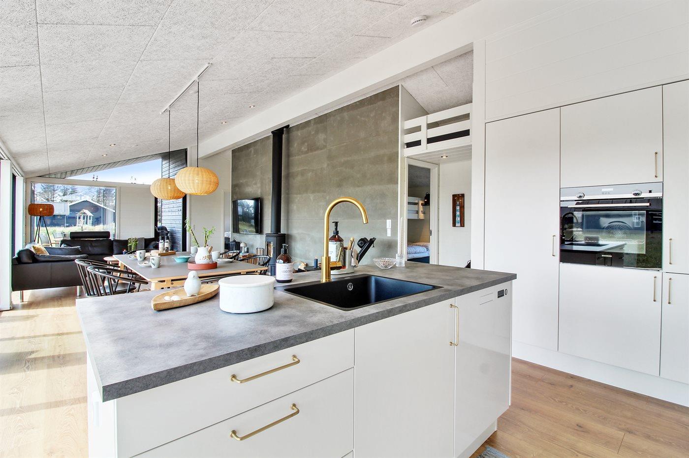 De keuken is uitgerust met koelkast Er is 4 inductiekookplaten, heteluchtoven, magnetron en vaatwasser.
