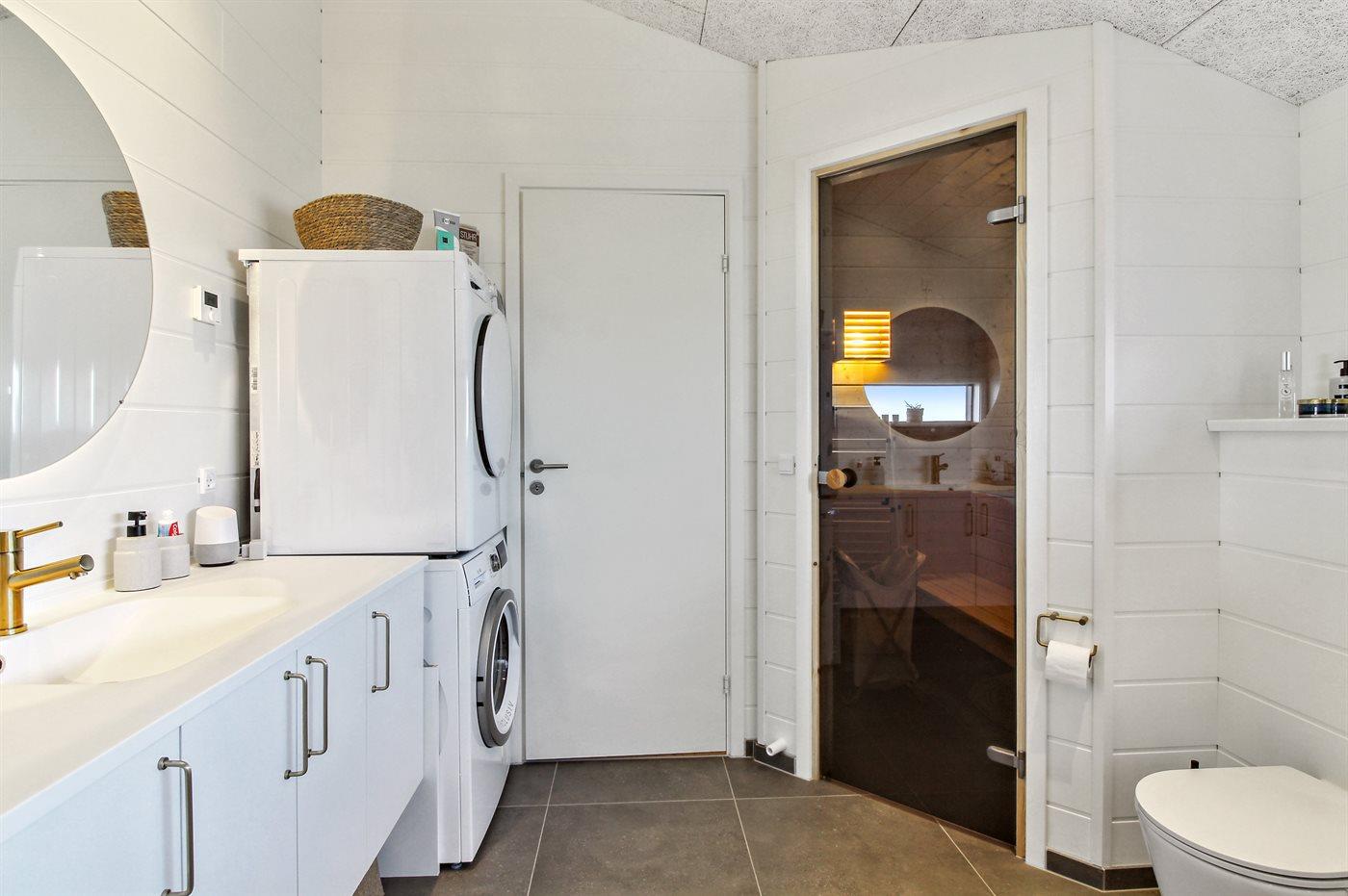 Er is 2 badkamers met douchehok en 2 toiletten. Er is vloerverwarming in 2 van de badkamers. De sauna biedt de gelegenheid tot ontspanning.