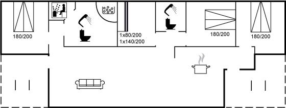 Er zijn in totaal 4 slaapkamers. De slaapplaatsen zijn als volgt verdeeld: 8 slaapplaatsen in tweepersoonsbedden. 1 slaapplaatsen in stapelbedden.