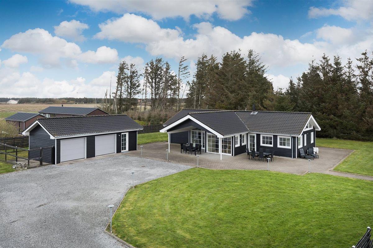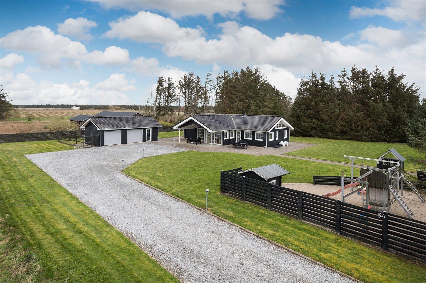 Ruim vakantiehuis in Løkken met sauna, bubbelbad en speeltoestellen op groot natuurterrein.