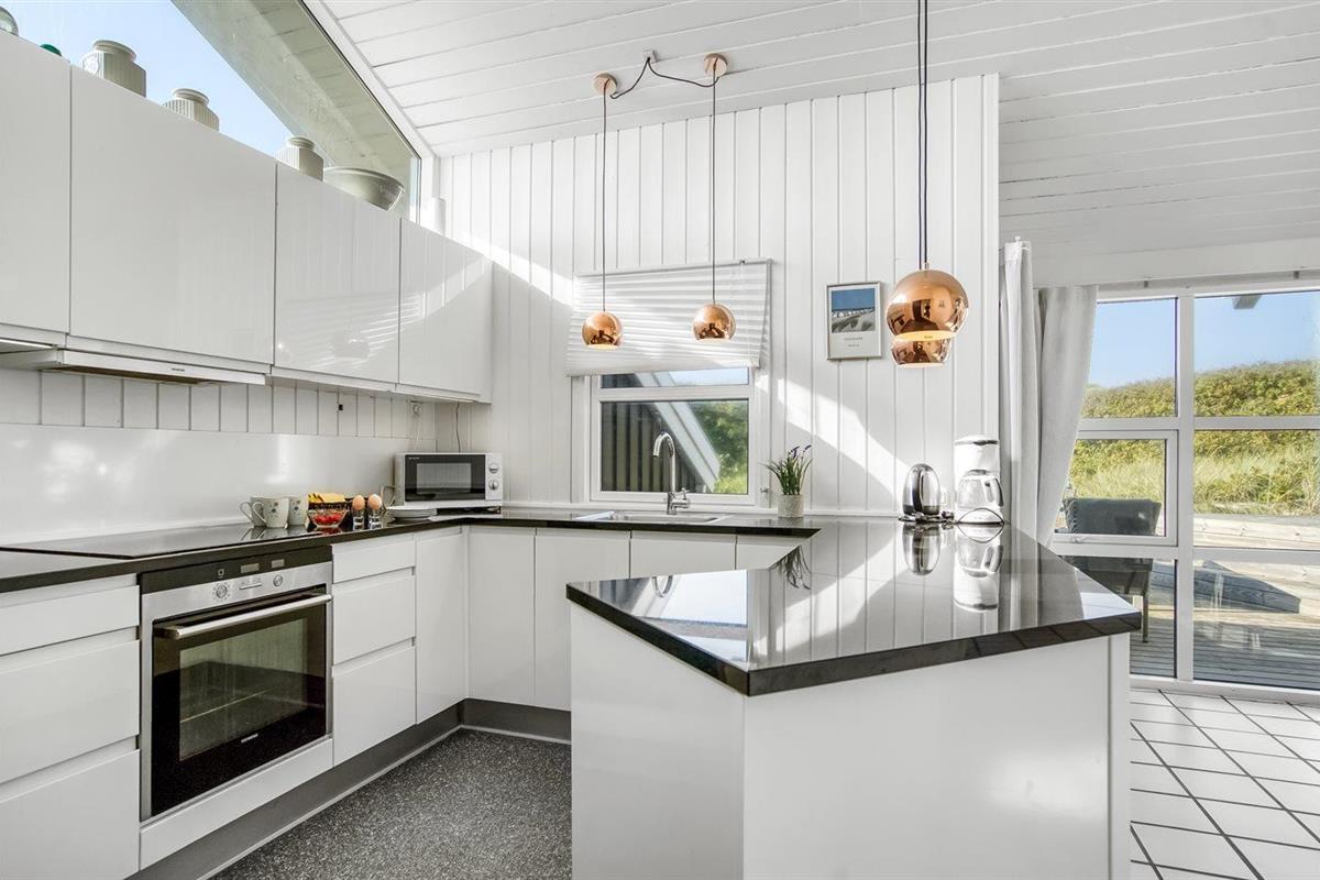 De keuken is uitgerust met koelkast Er is 4 inductiekookplaten, heteluchtoven, magnetron en vaatwasser.
