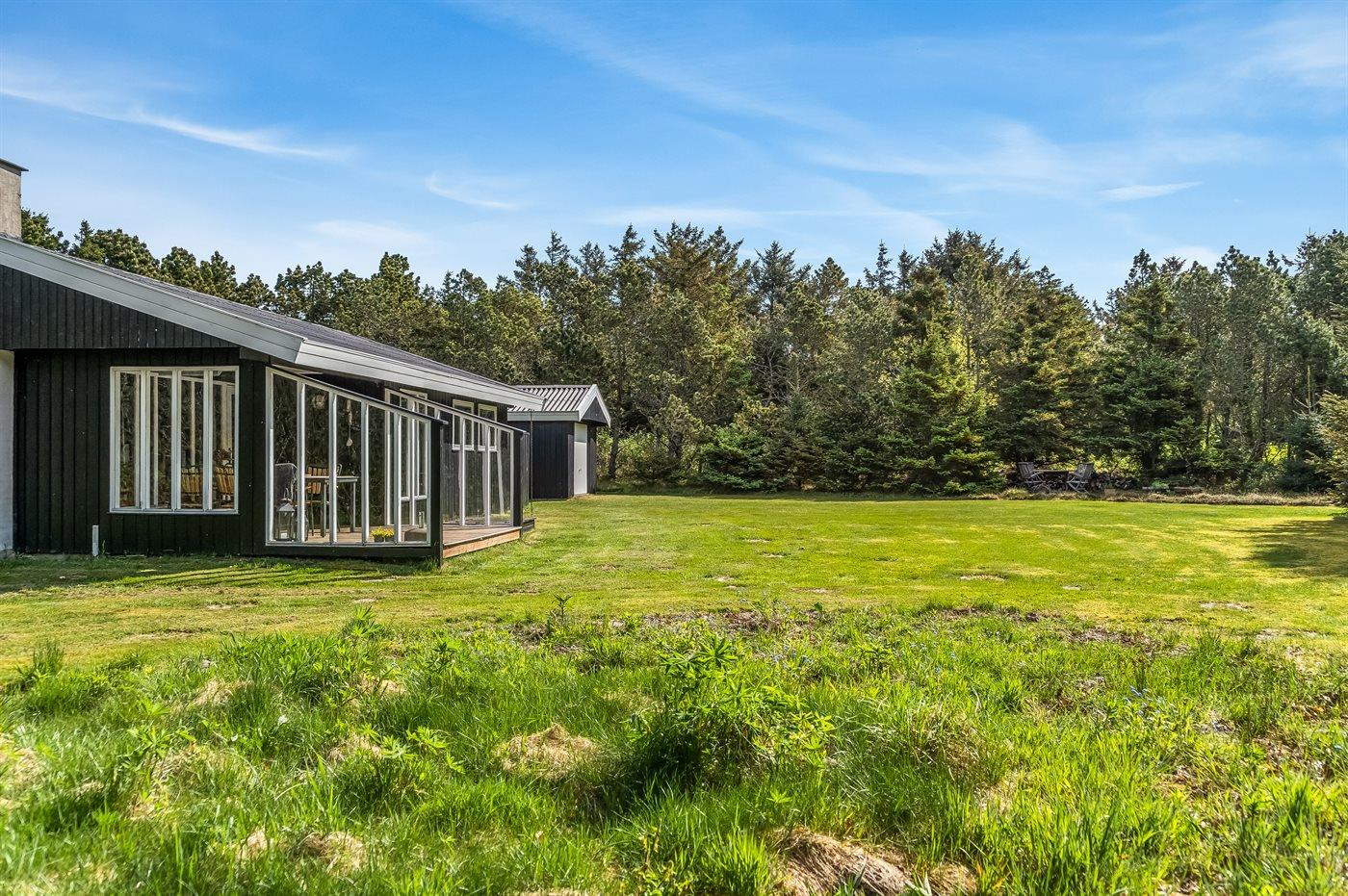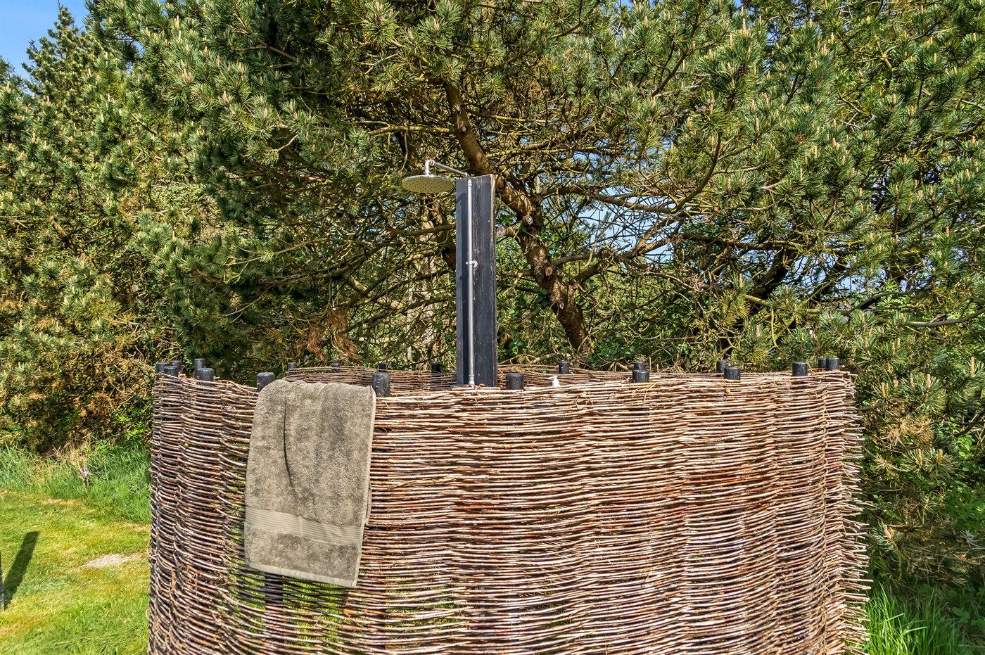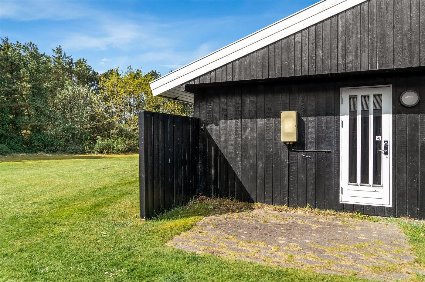 De vakantiewoning is gelegen op een 2422 m² groot aangelegde tuin. Afstand tot de zee 600 m. Dichtstbijzijnde winkel 1300 m. Bij de vakantiewoning hoort terras. Daarnaast is er een overdekt terras. Gereedschapsruimte. Zandbak.Vuurplaats. Buitendouche. Barbecue. Parkeerplaats bij het huis.