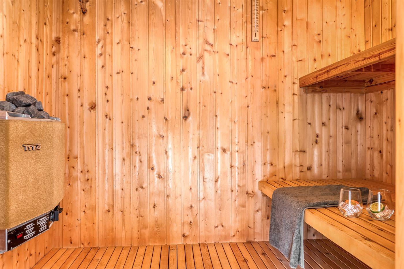 Er is 1 badkamer met douchehok en 1 toilet.. Er is vloerverwarming in 1 badkamer. De sauna biedt de gelegenheid tot ontspanning.