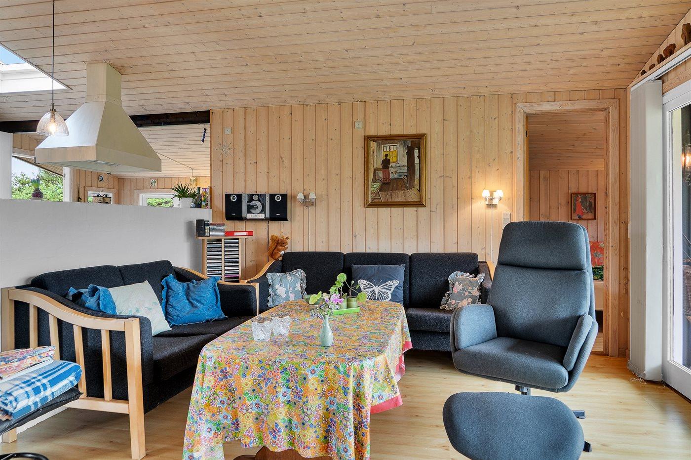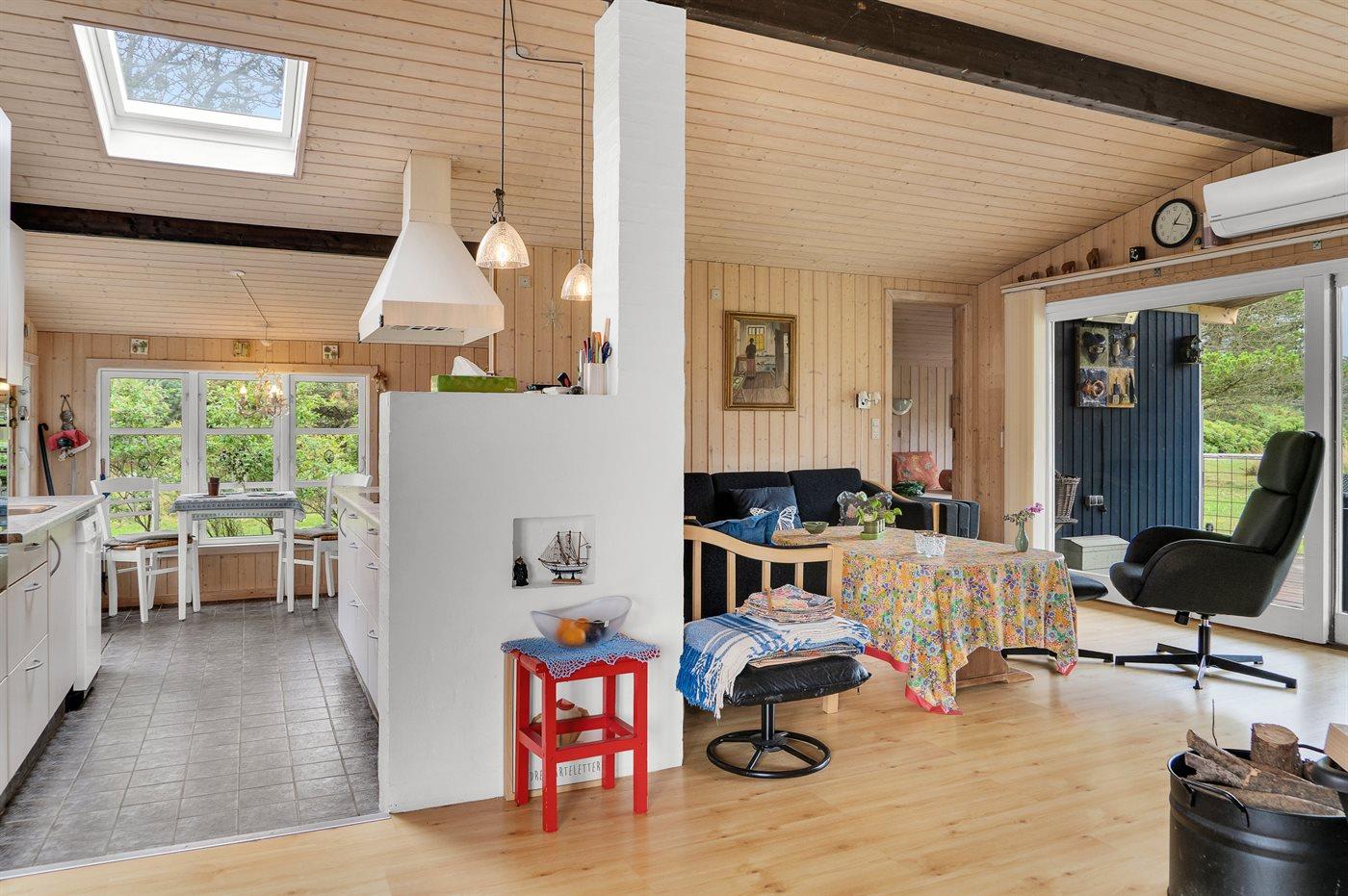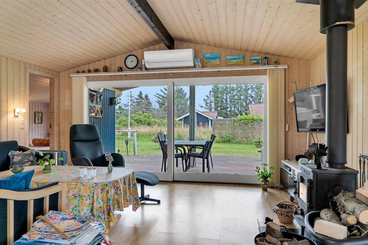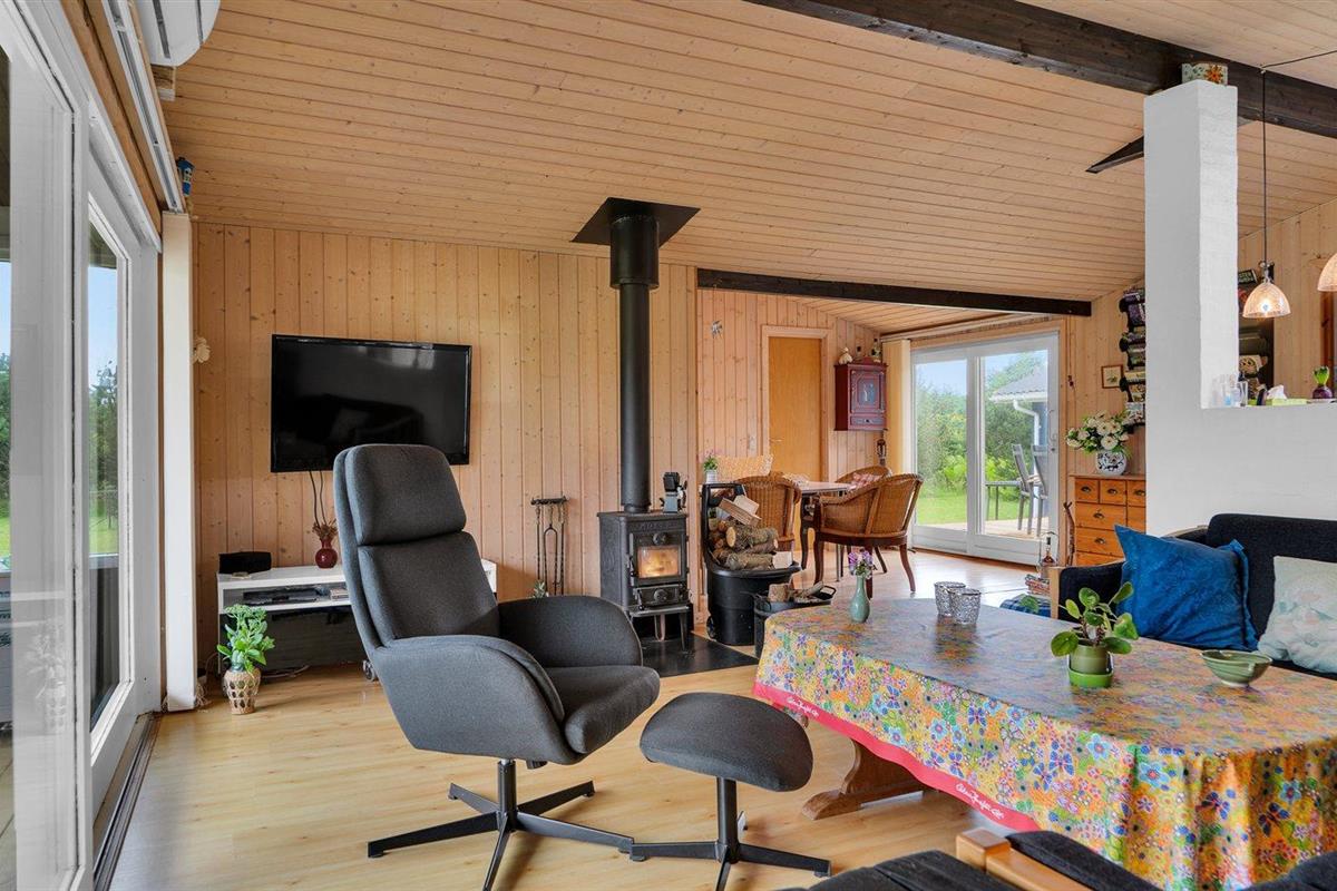 Comfortabel vakantiehuis in Denemarken met tuin, houtkachel en elektrische laadpaal, op 700 m van zee.