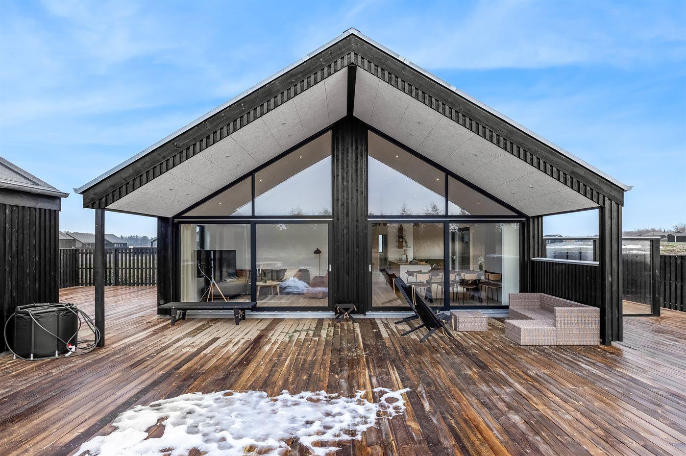 Modern vakantiehuis voor 10 personen met sauna, bubbelbaden en activiteitenruimte in natuurrijke omgeving.