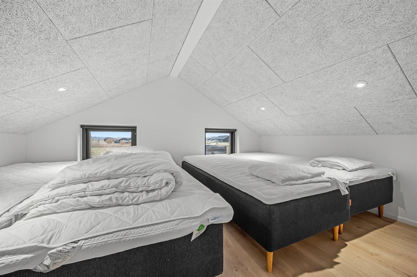 Er zijn in totaal 4 slaapkamers. De slaapplaatsen zijn als volgt verdeeld: 4 slaapplaatsen in tweepersoonsbedden. 6 slaapplaatsen in eenpersoonsbedden. 2 van deze slaapplaatsen bevinden zich in de open slaapzolder en 2 van deze slaapplaatsen bevinden zich in de bijgebouw.