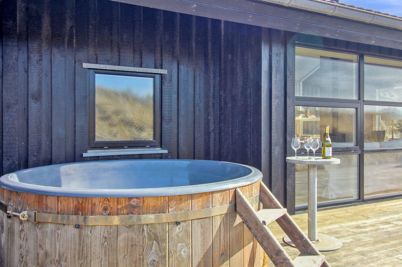 Het binnenbubbelbad (vulwater) biedt ontspanning aan 2 personen en het hot tub biedt ontspanning aan 7 personen.