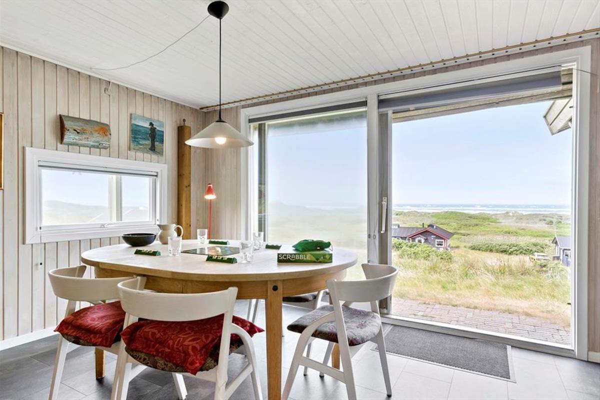 Dieses unglaublich schöne ältere Ferienhaus ist hell eingerichtet und begeistert mit seiner fantastischen Aussicht über die Nordsee und die weite Dünenlandschaft. Das Haus verfügt über drei Schlafzimmer. Darüber hinaus hat das Haus einen großen Wohnbereich in offener Verbindung zur Küche, welche das Haus besonders geräumig wirken lässt. Hier haben Sie überall einen tollen Ausblick auf die Nordsee. Das Haus ist energiesparend, mit modernen isolierten Fensterscheiben und einer guten Dämmung. Die Küche ist ausgestattet mit Herd, Backofen, Mikrowelle und Geschirrspülmaschine und hat einen direkten Zugang zur Terrasse. Das Badezimmer verfügt über WC, Dusche, Waschmaschine und Fußbodenheizung. Der Kaminofen im Herzen des Hauses, sowie die großen Fensterfronten mit dem ganz besonderen Lichteinfall sorgen dafür, dass Sie sich sofort wohlfühlen.
