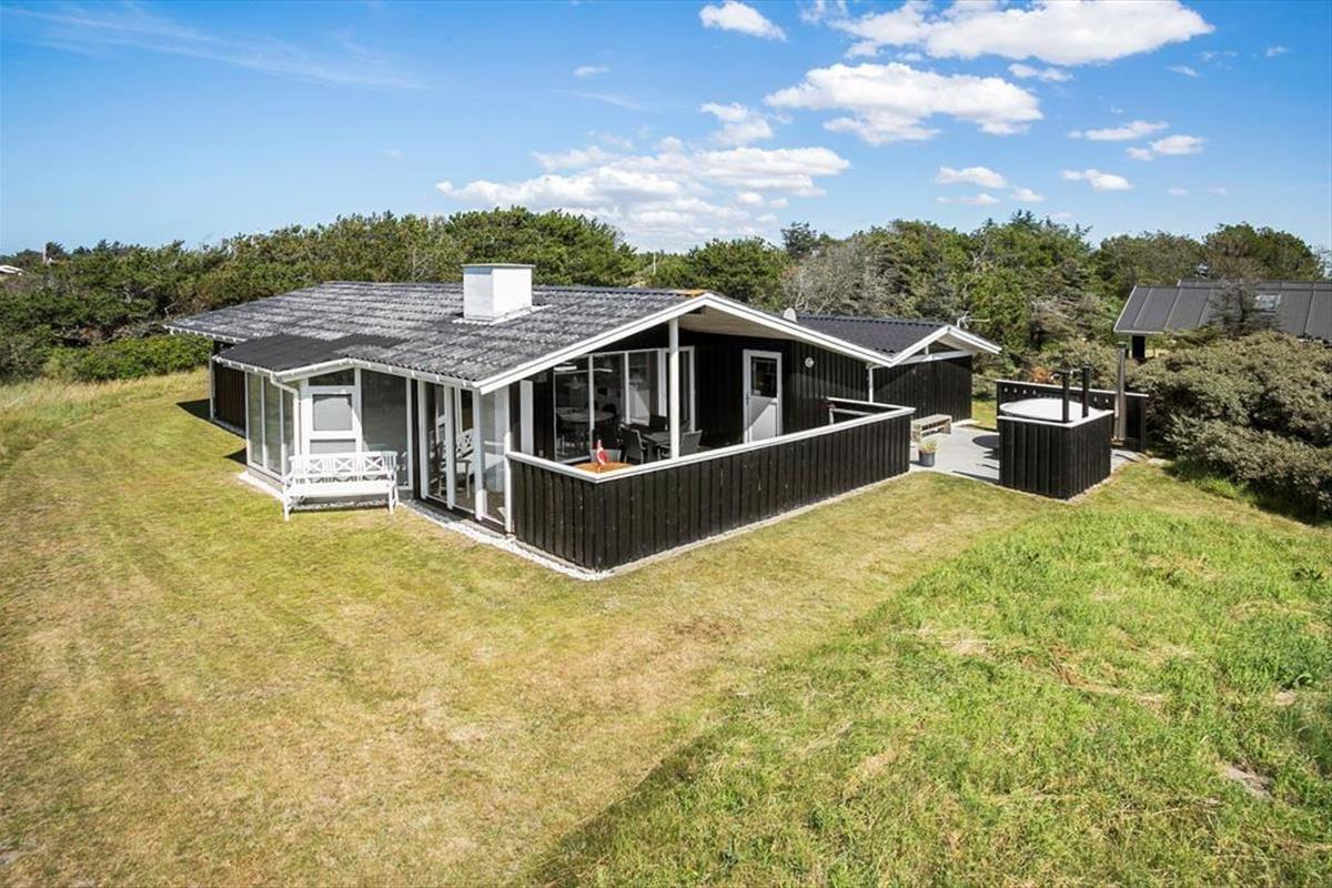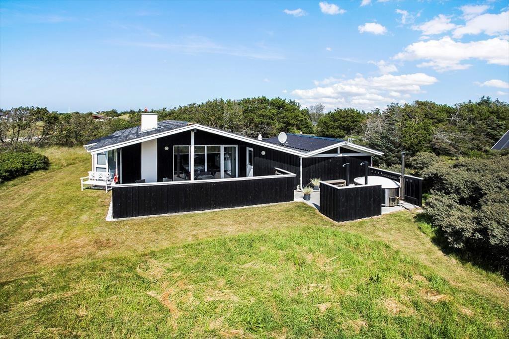 Geniet van dit sfeervolle vakantiehuis in Grønhøj met houtkachel en hot tub, slechts 400 m van het strand.