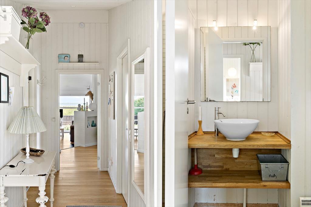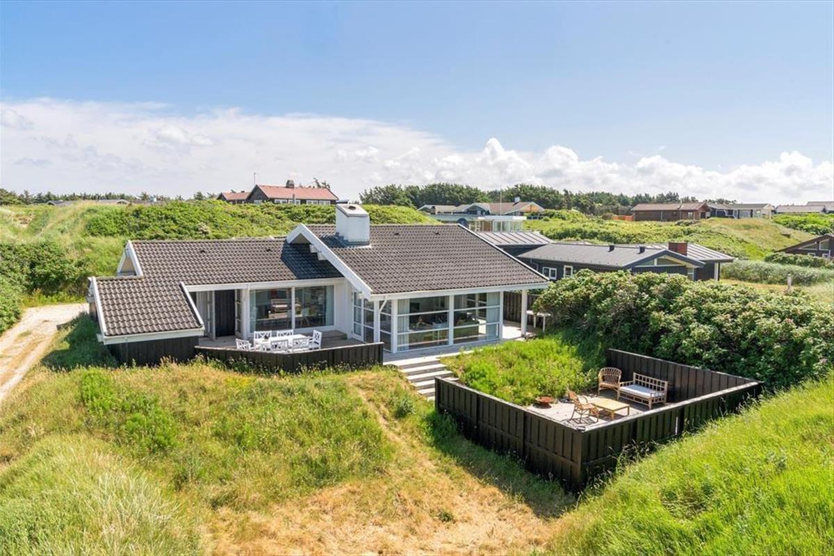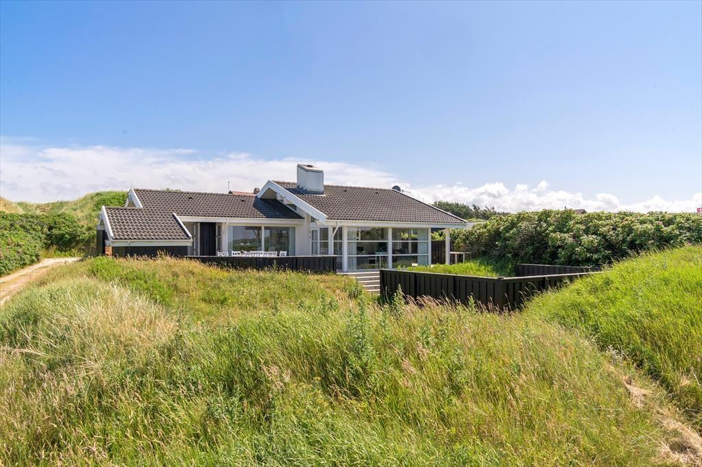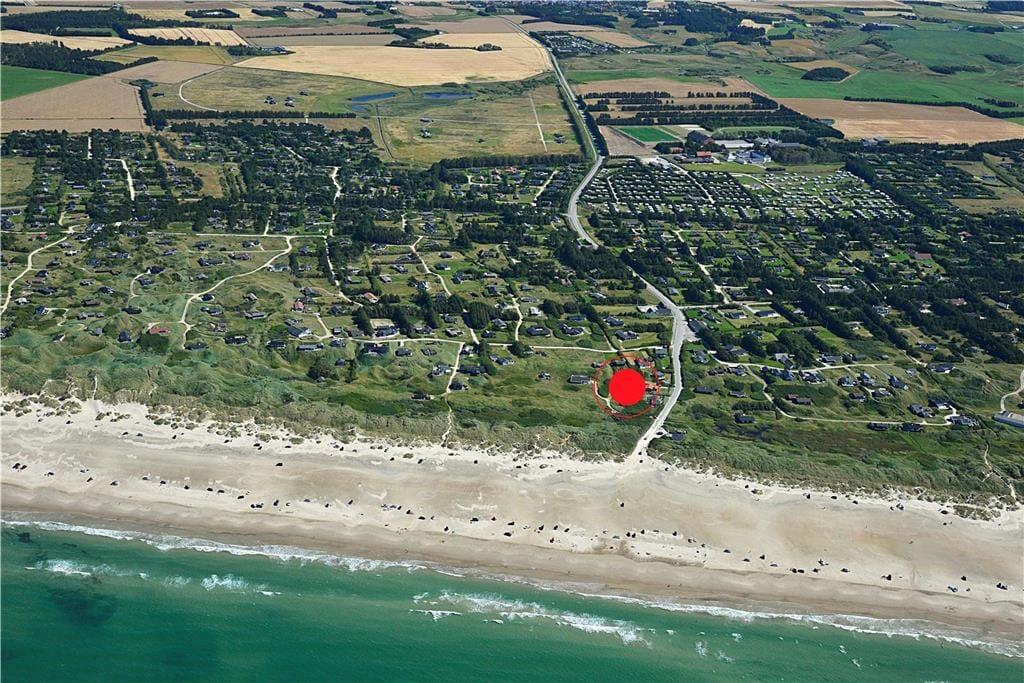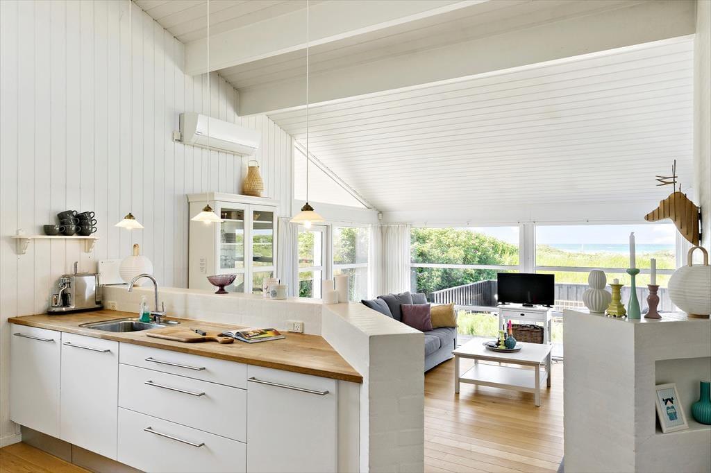 Der Weg zum Ferienhaus führt über eine kleine, schmale Einfahrt, was das zurückgezogene und ungestörte Gefühl des Ferienhauses unterstreicht. Wenn ihr Lust auf ein Bad oder einen Spaziergang entlang der Küste habt, ist der Strand nur 100 Meter entfernt, sodass es wirklich nicht übertrieben ist zu sagen, dass die Nordsee ganz in der Nähe ist. Wie es an Stränden in dieser Gegend typisch ist, ist der Grønhøj Strand ein breiter, weißer Sandstrand mit herrlichem Badewasser, und oft herrscht eine ruhigere Atmosphäre als an den Küstenabschnitten in den Badeorten Løkken und Blokhus. In Grønhøj gibt es auch viele Möglichkeiten für Ausflüge zu Fuß oder mit dem Fahrrad in der malerischen Umgebung – es sei denn, ihr entscheidet euch, den Tag im Fårup Sommerland zu verbringen, um die vielen Fahrgeschäfte und das große Schwimmbad auszuprobieren.