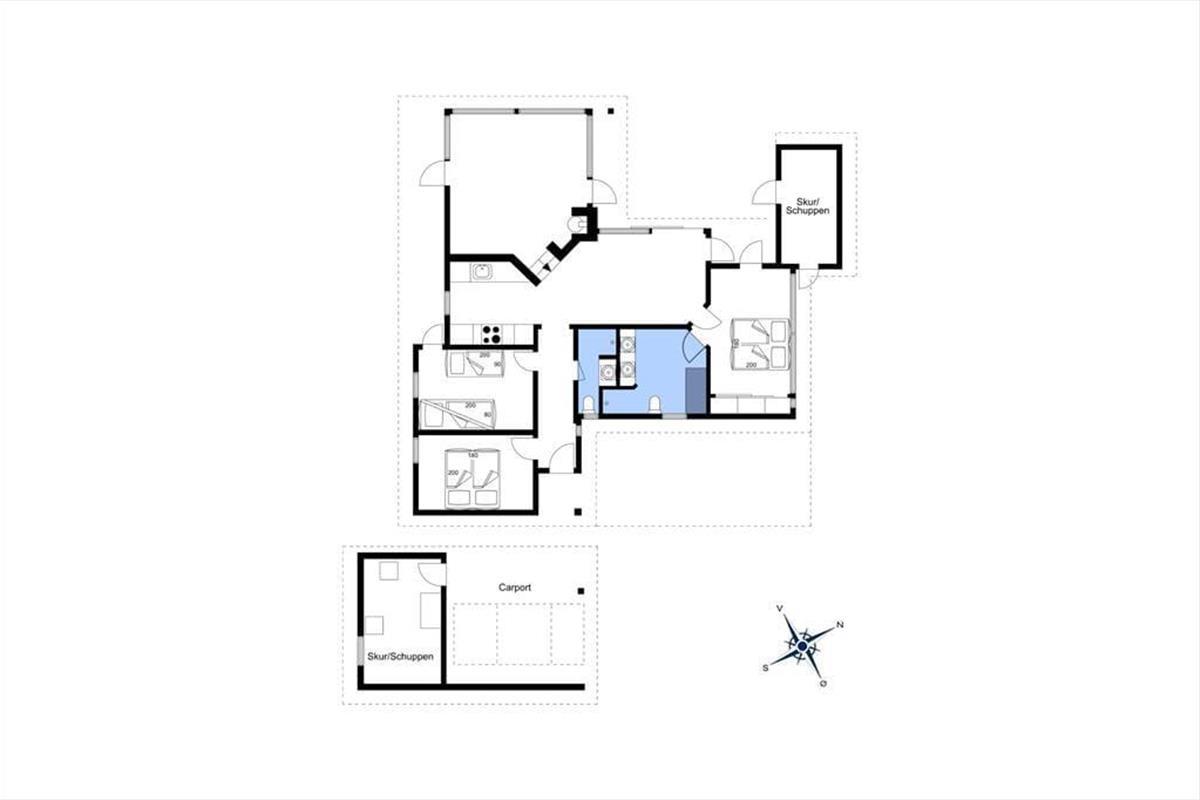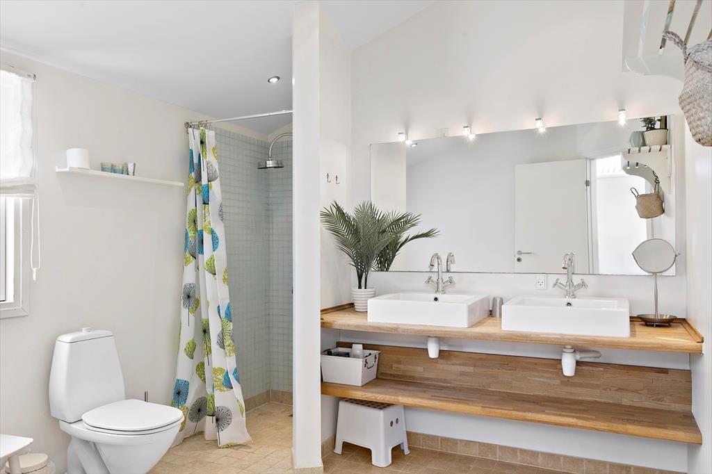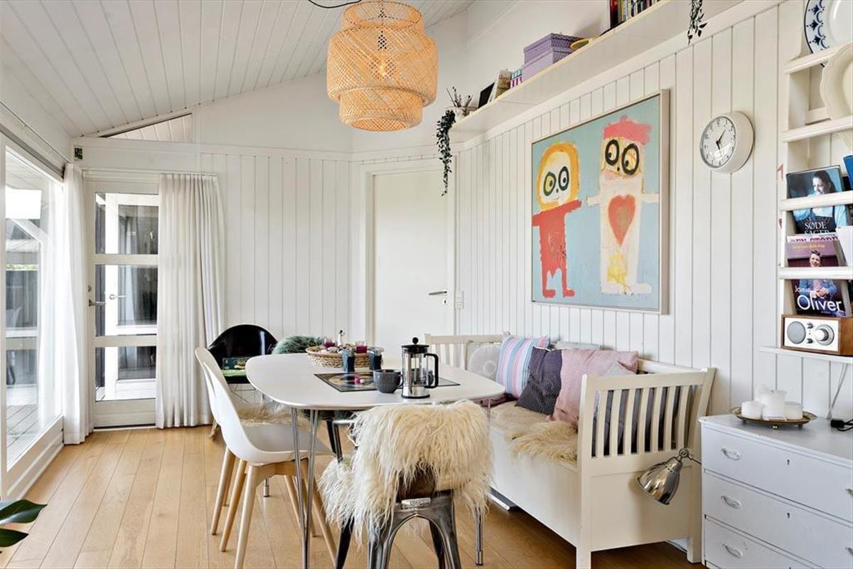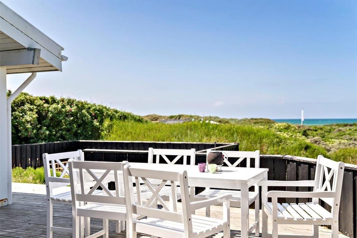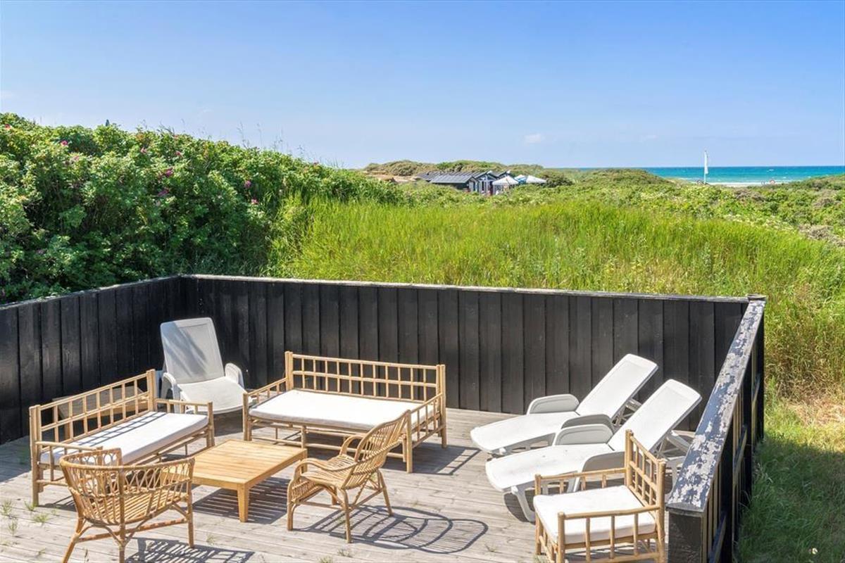 Der Weg zum Ferienhaus führt über eine kleine, schmale Einfahrt, was das zurückgezogene und ungestörte Gefühl des Ferienhauses unterstreicht. Wenn ihr Lust auf ein Bad oder einen Spaziergang entlang der Küste habt, ist der Strand nur 100 Meter entfernt, sodass es wirklich nicht übertrieben ist zu sagen, dass die Nordsee ganz in der Nähe ist. Wie es an Stränden in dieser Gegend typisch ist, ist der Grønhøj Strand ein breiter, weißer Sandstrand mit herrlichem Badewasser, und oft herrscht eine ruhigere Atmosphäre als an den Küstenabschnitten in den Badeorten Løkken und Blokhus. In Grønhøj gibt es auch viele Möglichkeiten für Ausflüge zu Fuß oder mit dem Fahrrad in der malerischen Umgebung – es sei denn, ihr entscheidet euch, den Tag im Fårup Sommerland zu verbringen, um die vielen Fahrgeschäfte und das große Schwimmbad auszuprobieren.