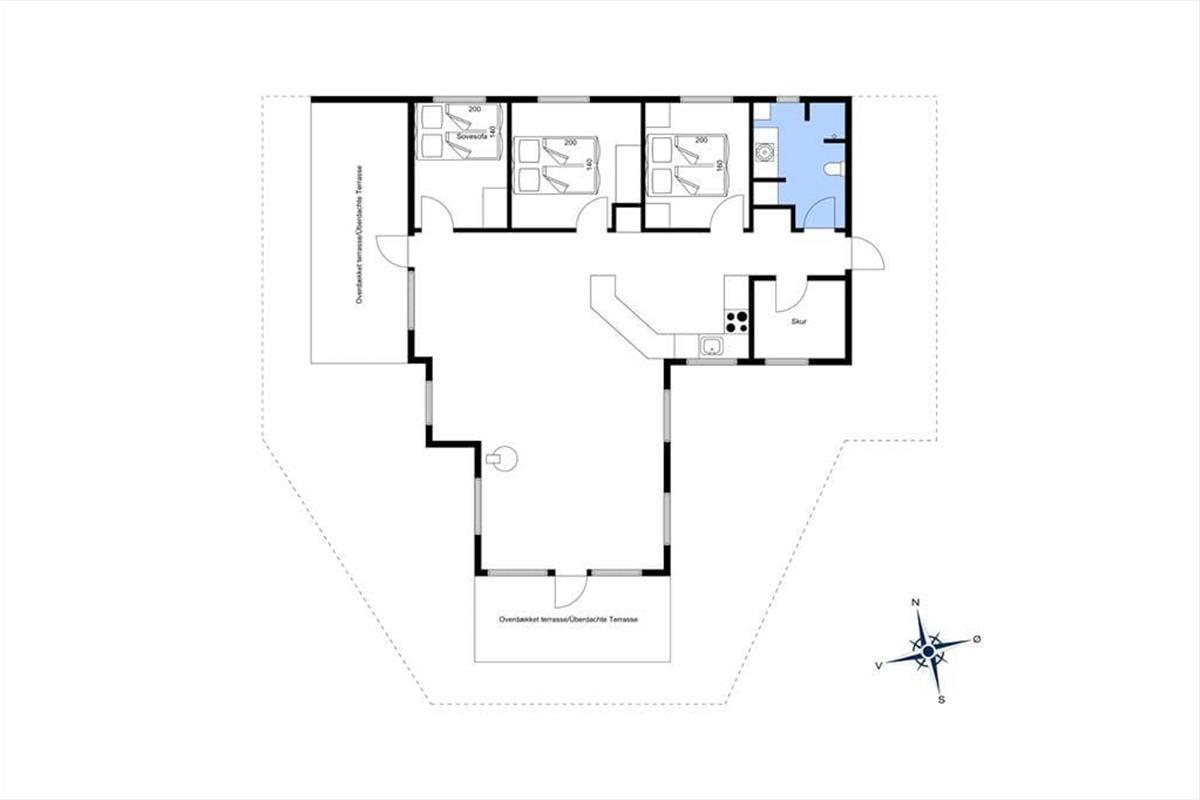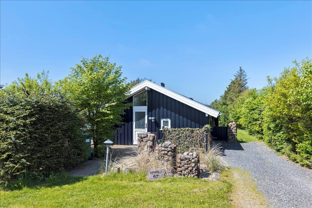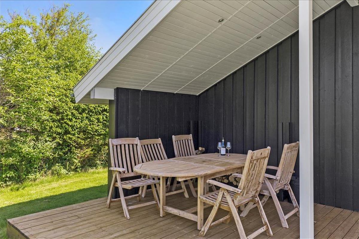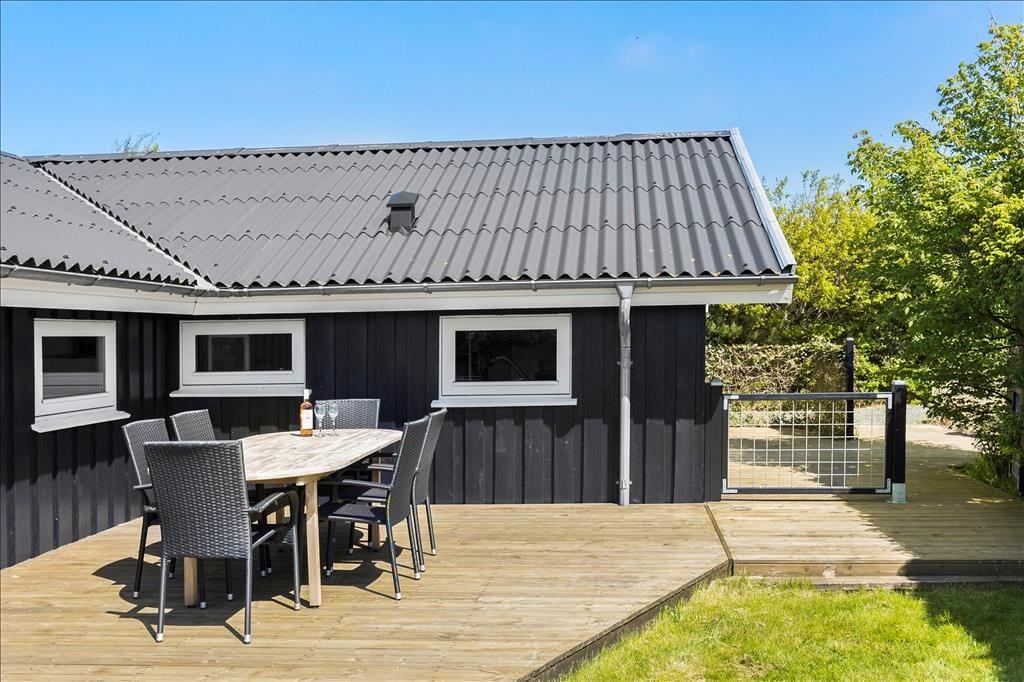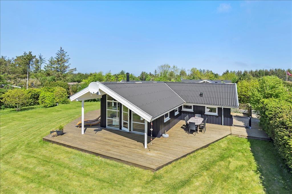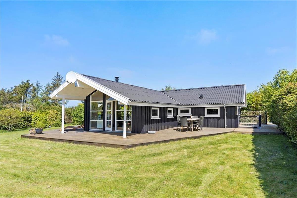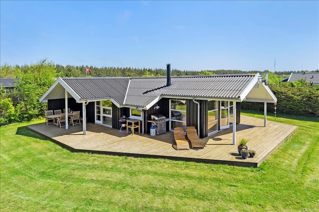 Das Haus ist von einer großen, zusammenhängenden Holzterrasse umgeben, die das Leben im Freien wirklich in Szene setzt. Hier könnt ihr der Sonne im Laufe des Tages folgen – von den ersten Sonnenstrahlen bei der Morgenkaffee, über die Mittagszeit und das Mittagessen bis hin zum Abend, wenn der Grill angezündet wird. Die Zeit dazwischen? Sie kann auf einer Liege mit einem guten Krimi oder bei Spielen und Ballspielen auf dem großen Rasen verbracht werden. Der Garten ist im Allgemeinen eine ganz private Oase, die auf allen Seiten durch Randbepflanzung gut geschützt ist – perfekt für diejenigen, die Ruhe und Entspannung im Urlaub suchen.