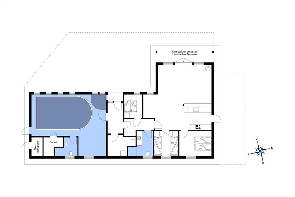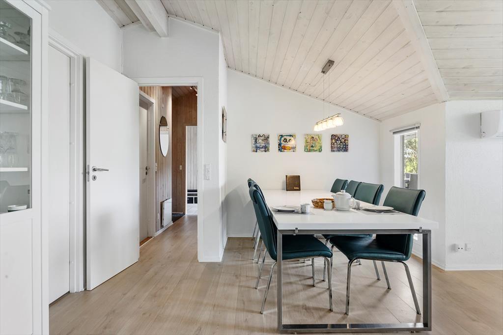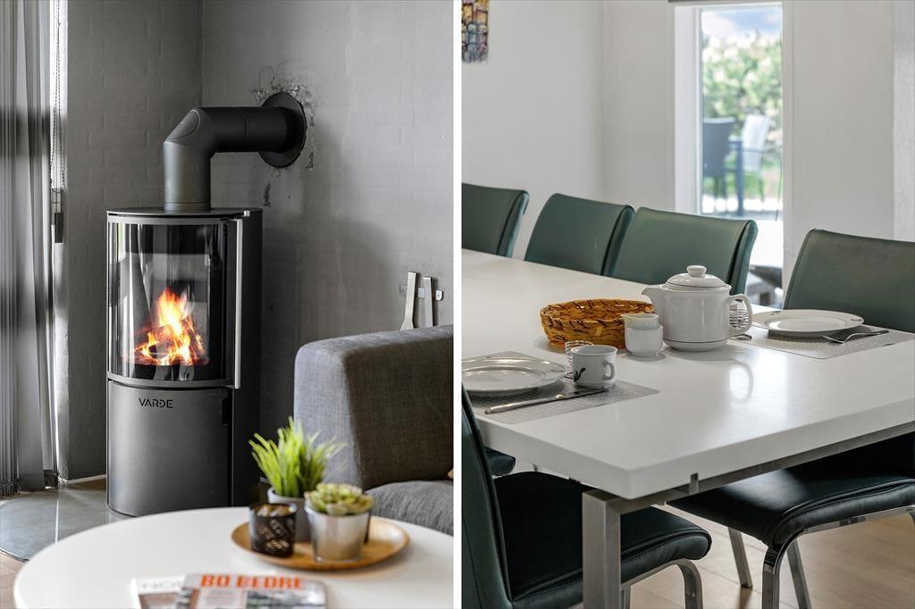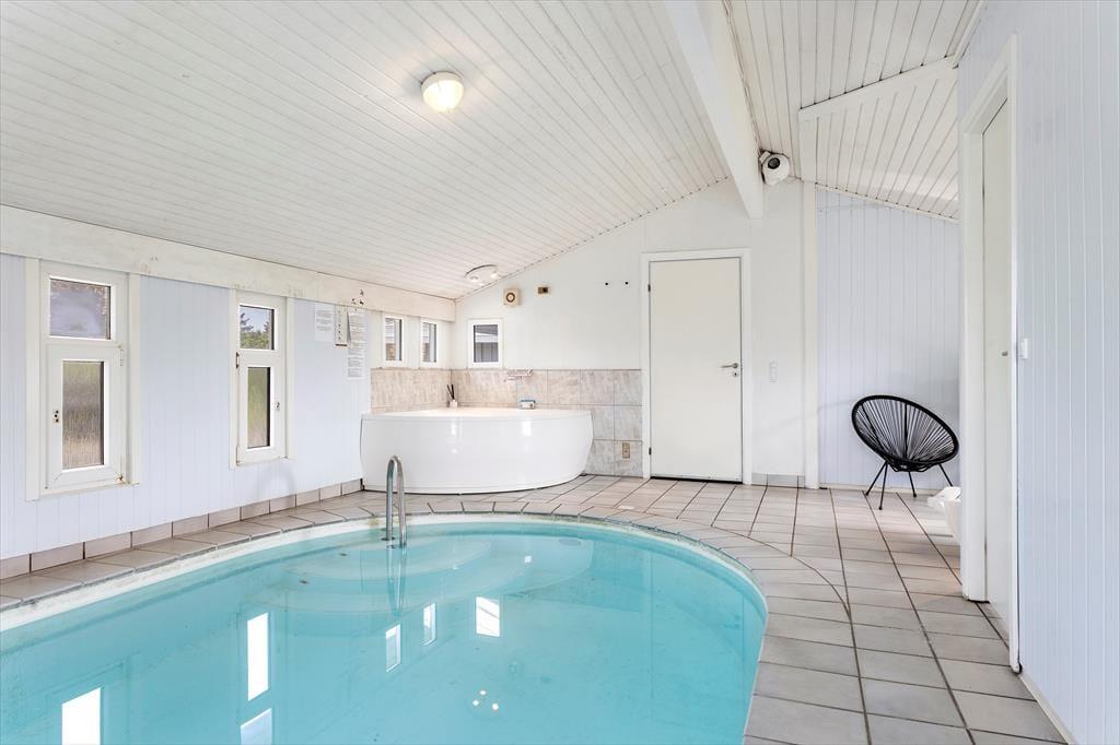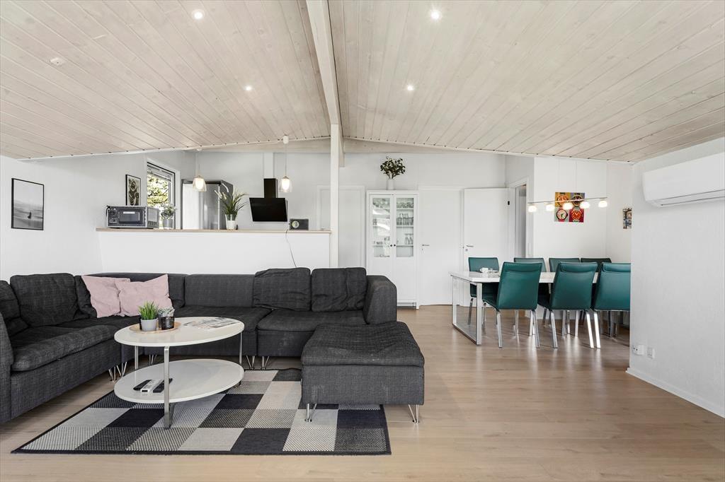 Das 126 m² große Haus ist die perfekte Wahl, wenn du auf der Suche nach einer Ferienwohnung mit gemütlicher Einrichtung bist. Es ist wirklich etwas Besonderes, einen Poolbereich im Haus zu haben, denn das bedeutet, dass du gleich am Morgen mit dem Schwimmtrainer im Pool schwimmen kannst und den Abend damit verbringen kannst, im Pool und in der Sauna zu entspannen – und die größten Wasserratten der Familie können fast den ganzen Urlaub damit verbringen, zu planschen und zu spielen. Es ist auch gemütlich, sich im Wohnzimmer des Ferienhauses zu versammeln, das einen Kamin, eine einladende Einrichtung und eine moderne offene Küche bietet. Die Raumaufteilung ist durchdacht, sodass du auch zwei gute Badezimmer und drei Schlafzimmer mit insgesamt acht Schlafplätzen findest.
