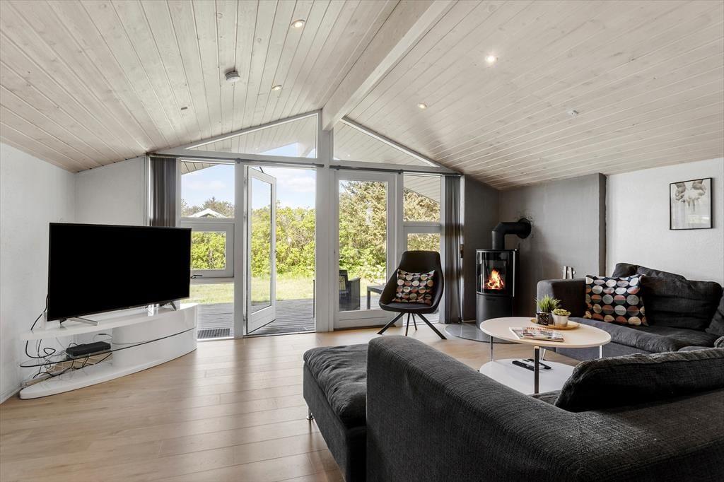 Das Ferienhaus hat eine schöne Lage in Grønhøj, denn die Straße ist klein und geschlossen, und vom Haus aus sind es nur 730 Meter zum Strand. Auf dem Weg zum Nordsee-Strand passiert man den örtlichen Eissalon und Grill, und hier kannst du Halt machen, wenn du etwas Leckeres zu essen brauchst, bevor oder nach dem Bad. Grønhøj ist ein ruhiges und friedliches Gebiet für deinen Urlaub, mit einem breiten, weißen Sandstrand und schöner Natur. Vom Ferienhaus aus hast du zudem leichten Zugang zu den charmanten Badeorten Blokhus und Løkken, und lokale Attraktionen wie Fårup Sommerland, der Family Farm Fun Park und das Børglum Kloster sind tolle Ausflugsziele für die ganze Familie.