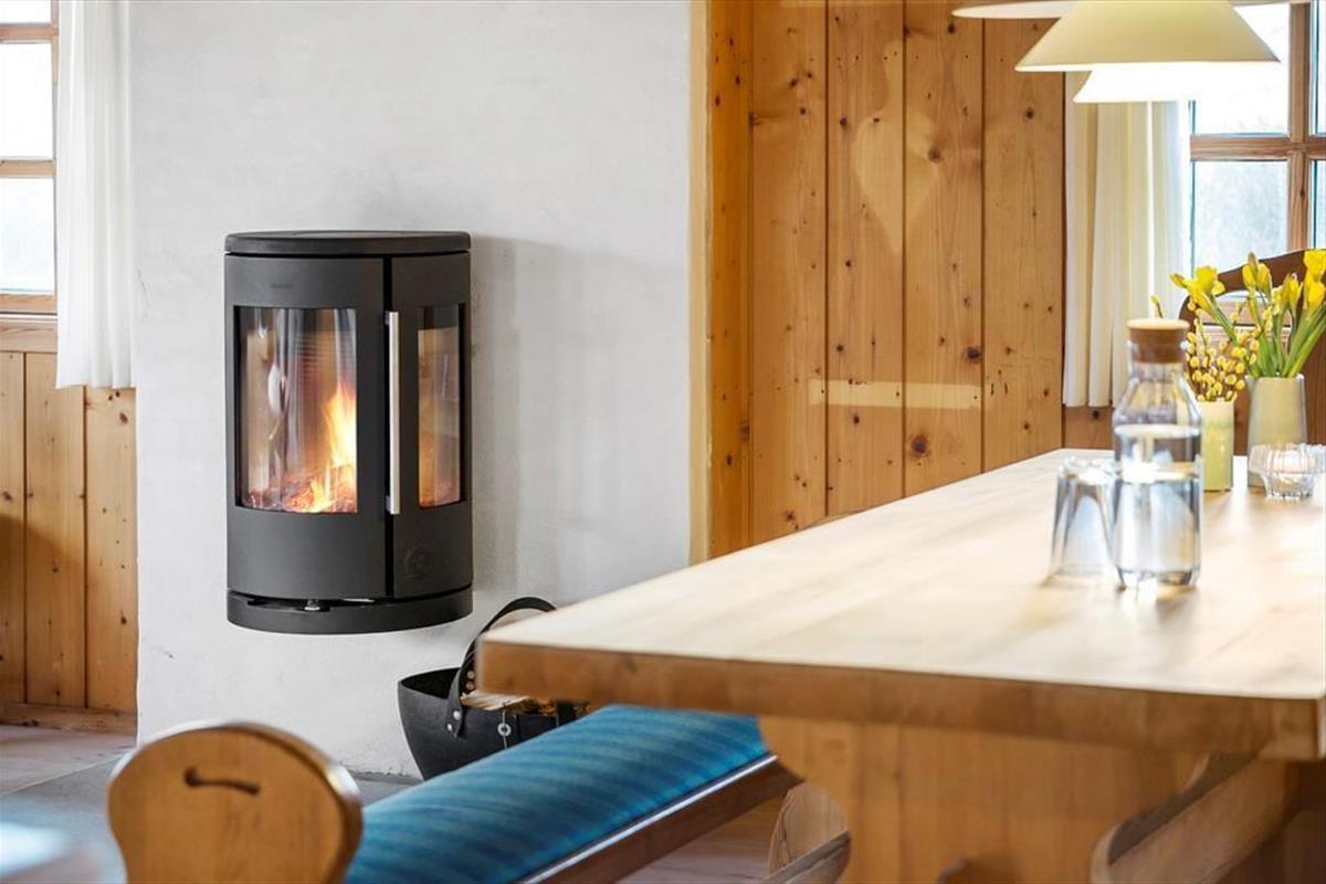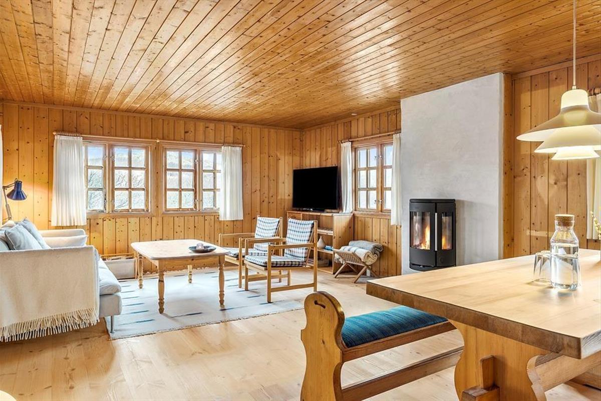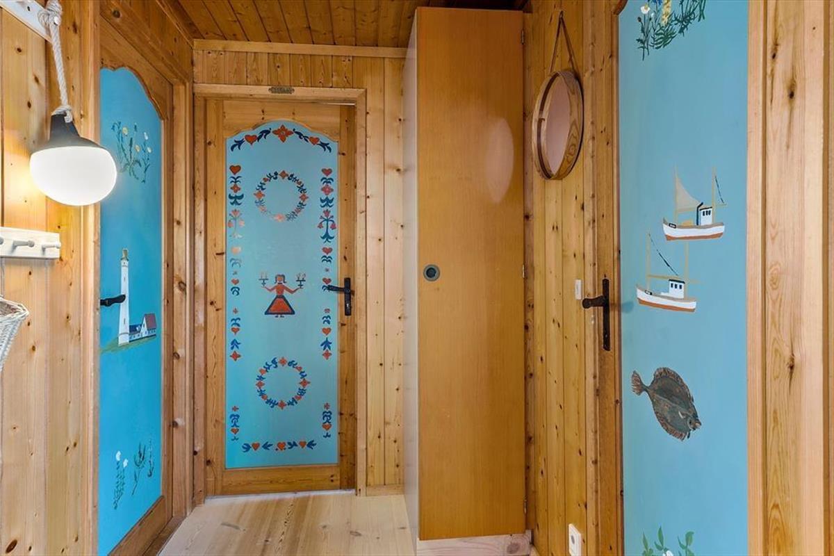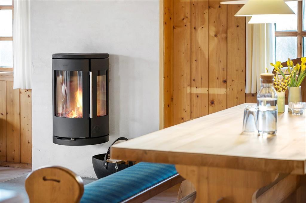 Mit Kamin in einem der Schlafzimmer, fein dekorierten Türen und komfortablem Mobiliar wird die Gemütlichkeit in diesem klassischen Holzferienhaus, das am Ende von Hedvigsvej direkt an der Grønhøj-Strand liegt, großgeschrieben.