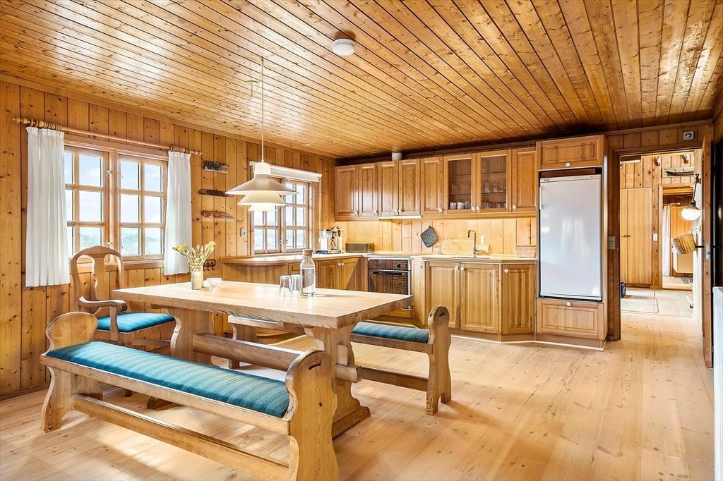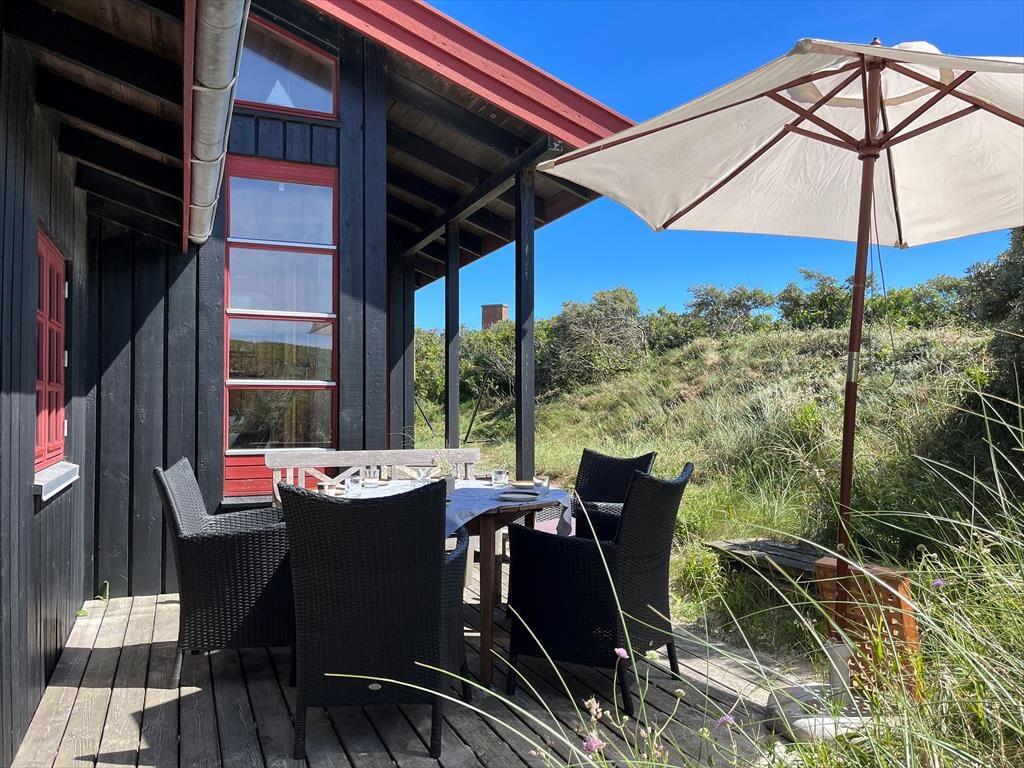 Das Ferienhaus befindet sich seit 1971 in erster Dünenreihe, und obwohl es kontinuierlich gepflegt und renoviert wurde, hat es glücklicherweise seinen klassischen Charme behalten. Die rustikalen Holzleisten an Wänden und Decke tragen zur warmen und angenehmen Atmosphäre der Räume bei, die sich über insgesamt 120 m² erstrecken. Das Wohnzimmer ist ein wunderbarer Aufenthaltsraum mit Kamin, Flachbildfernseher und offener Verbindung zur Küche. Fein bemalte Dekorationen zieren einige der profilierten Türen, die in die drei Schlafzimmer und zwei Badezimmer des Hauses führen. Eines der Schlafzimmer ist mit einem Etagenbett ausgestattet, das sich am besten für Kinder eignet, und alternativ gibt es Schlafmöglichkeiten auf dem Dachboden. Das größte Schlafzimmer verfügt dagegen über einen eigenen Kamin und liegt direkt an einem zusätzlichen Aufenthaltsraum, in dem ihr Billard spielen oder euch auf dem Sofa mit einem guten Buch entspannen könnt.