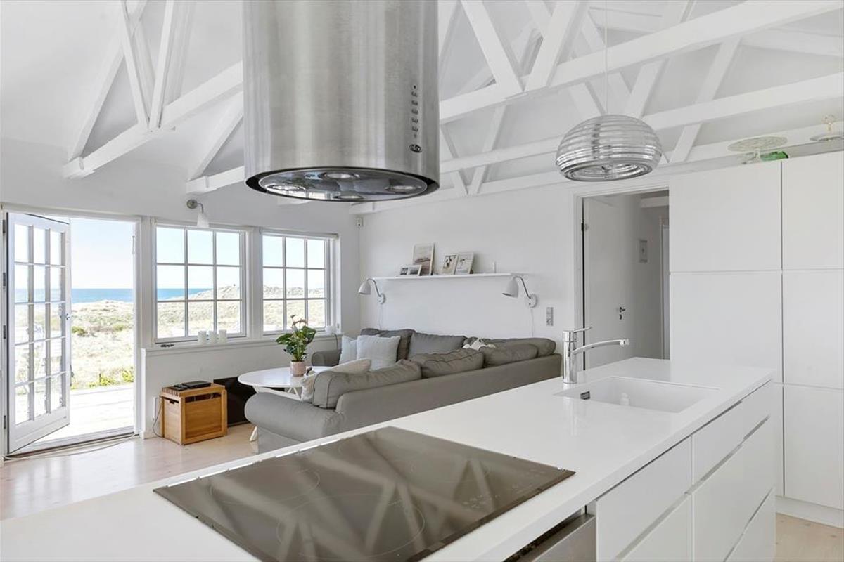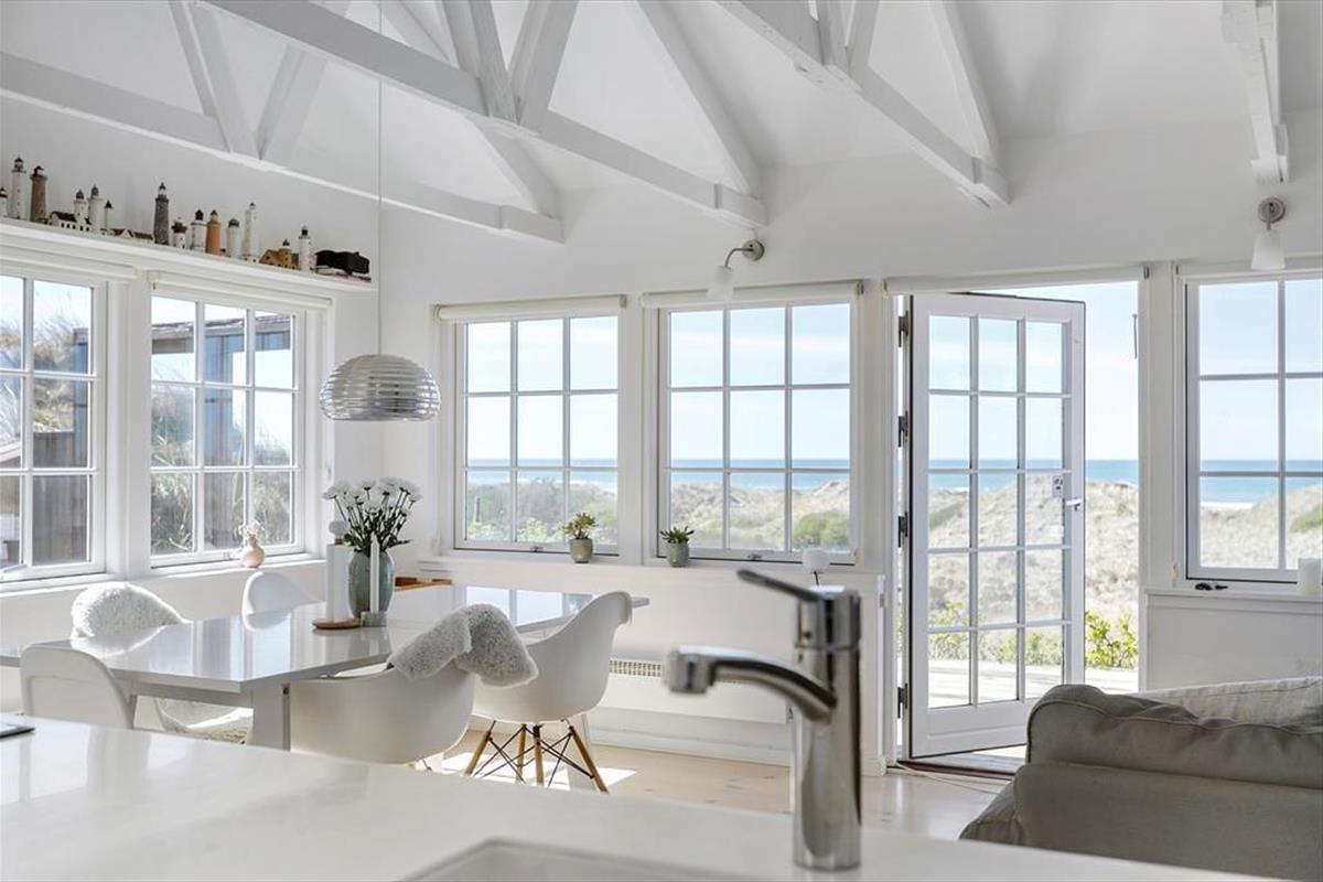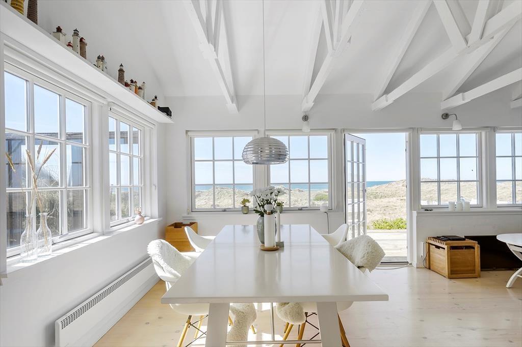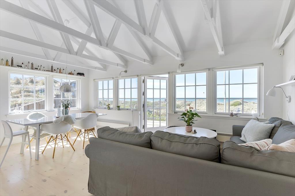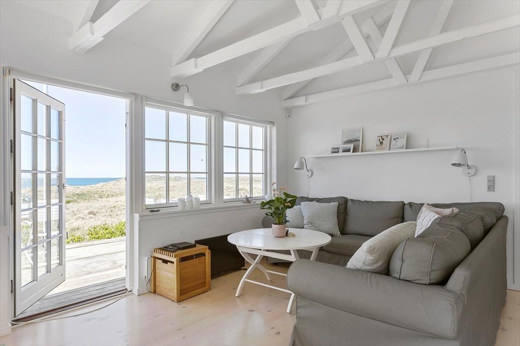 Liebt ihr Meeresblick, Natur und Ruhe? Dann werdet ihr euch sofort in diesen hellen Ferientraum verlieben – in erster Reihe zum Strand von Grønhøj mit einem seltenen Panoramablick über Dünen und Meer. Hier wohnt ihr mitten in der Natur, umgeben von Frieden, Licht und dem Klang der Wellen.