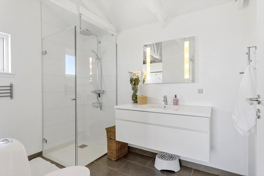 Das Herz des Hauses ist die helle Wohnküche von ca. 30 m², in der ihr kochen könnt, während ihr den Ausblick genießt und die Morgensonne auf den Wellen tanzen seht. Der Raum hat eine offene Dachkonstruktion, Sprossenfenster und eine ruhige Atmosphäre wie in einem Badehotel. Die beiden Hauptschlafzimmer verfügen über neue, hochwertige Betten und bieten direkten Meerblick vom Bett aus. Außerdem gibt es ein gemütliches Etagenzimmer und ein helles Badezimmer mit großer Duschkabine. Im Annex befindet sich ein helles Zimmer mit Meerblick, ein kleines WC und viel Schrankplatz – ideal für Teenager oder Gäste. Das Haus verfügt über vier Schlafzimmer und acht Schlafplätze, kann jedoch nur für sechs Gäste gemietet werden, um den Komfort zu bewahren.