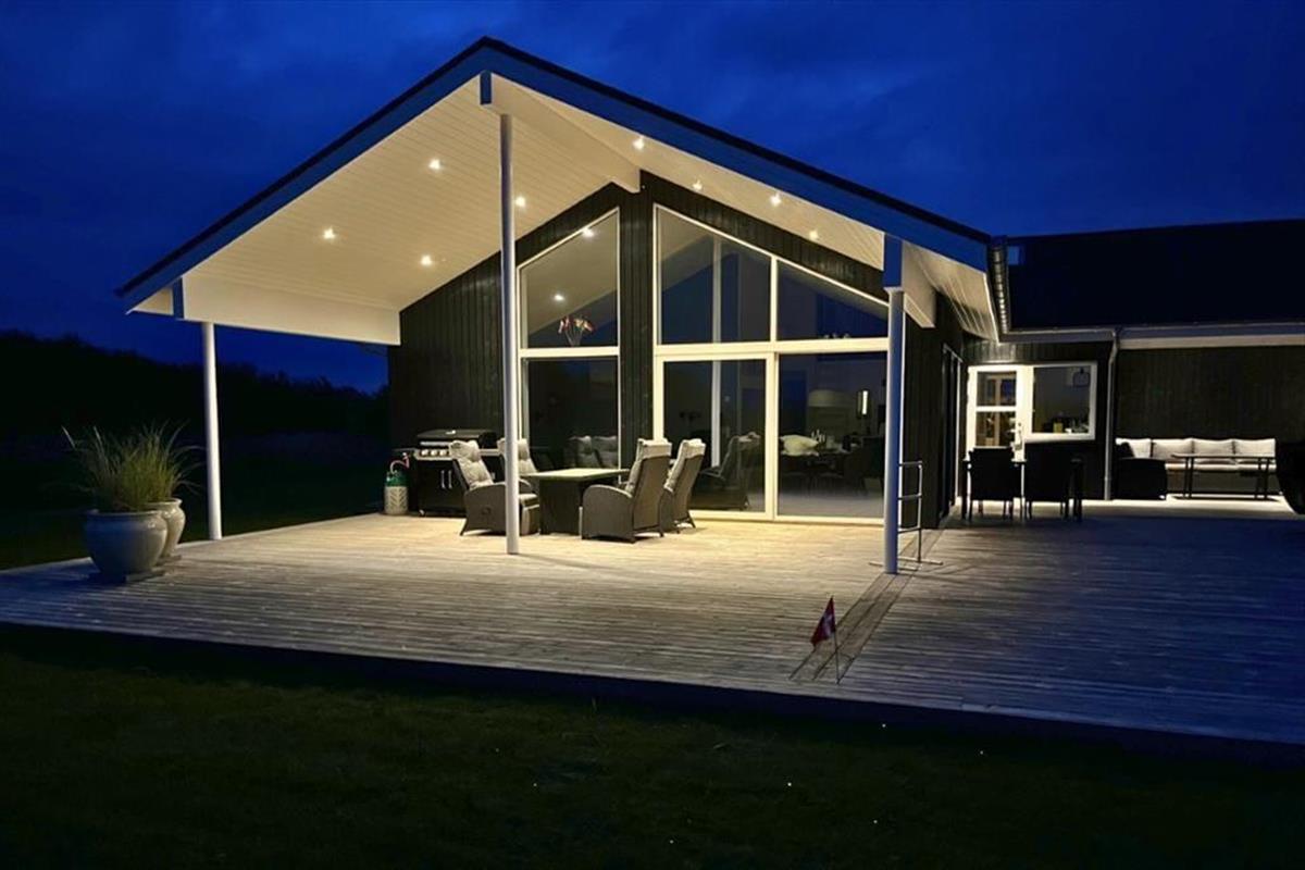 Dieses fantastische Ferienhaus strahlt Stil und Komfort aus, mit einer Raumaufteilung, die sowohl Gemeinschaft als auch Privatsphäre bietet. Die hellen und geräumigen Wohnzimmer sind in einem modernen nordischen Stil eingerichtet, bei dem große Fensterfronten das Licht der Natur ins Haus holen. Das Wohnzimmer öffnet sich zu einer überdachten Terrasse, die das Ferienhaus nach draußen verlängert und zu gemütlichen Stunden unter freiem Himmel einlädt – auch wenn der Tau fällt. Das Haus verfügt über drei gut ausgestattete Badezimmer, von denen eines ein Innen-Spa bietet, das nach einem erlebnisreichen Tag zur Entspannung einlädt. Mit vier guten Schlafzimmern und einem Hängeboden, der perfekt für die Kinder ist, gibt es reichlich Platz für die ganze Familie. Die Alkoven bieten zusätzliche gemütliche Ecken, in die du dich mit einem guten Buch oder für ein Nickerchen zurückziehen kannst.