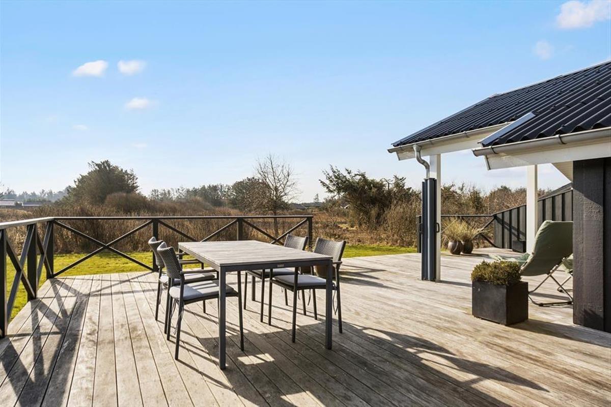 Die große Holzterrasse ist das Herzstück des Ferienhauses in den Sommermonaten. Hier kannst du mit einem guten Buch entspannen, die warmen Sonnenstrahlen genießen oder die Familie zu gemütlichen Mahlzeiten unter freiem Himmel versammeln. Der Garten bietet viel Privatsphäre, während der Blick auf das grüne Gebiet ein Gefühl von Frieden und Ruhe vermittelt.