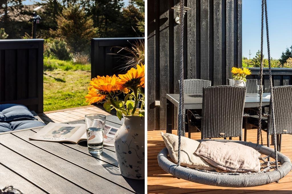 Die große Terrasse des Ferienhauses lädt zu vielen entspannten Momenten unter freiem Himmel ein. Hier kannst du den Tag mit einer Tasse Kaffee beginnen, während die Sonne am Himmel aufgeht, oder ein köstliches Abendessen vom Grill genießen, während die Abendsonne ihre goldenen Strahlen über die Terrasse wirft. Das Grundstück rund um das Haus ist herrlich und sonnig mit viel Platz zum Spielen und Toben, und du hast den ganzen Tag über reichlich Gelegenheit, sowohl Sonne als auch Schatten zu finden. Egal, ob du dich mit einem Buch im Liegestuhl entspannen oder die Familie zu einer Partie Krocket herausfordern möchtest, das große Grundstück bietet den perfekten Rahmen für einen wunderschönen Urlaub.
