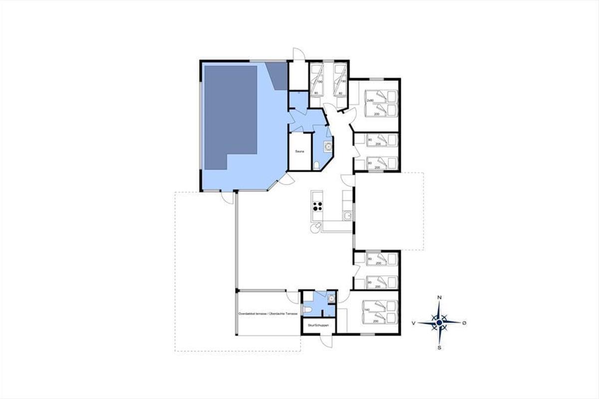 Eine Lage so nahe am Westmeer gibt es nur wenige. Mit nur 240 Metern bis zum Strand in Grønhøj wird ein großer Teil des Urlaubs sicherlich mit Baden, Wattwandern, Sandburgen bauen und Toben in den Dünen verbracht. In der Nähe des Hauses befindet sich auch das Grønhøj Ferienzentrum mit einem großen Spielplatz und einer Minigolfanlage. Die gesamte Gegend rund um Grønhøj ist von einer wunderschönen und abwechslungsreichen Natur geprägt, die man entweder mit dem Fahrrad oder zu Fuß über ein großes und gut ausgebautes Wegenetz entdecken kann. Die nächste Stadt ist Løkken, wo man einkaufen, shoppen und in einem der vielen gemütlichen Restaurants essen kann. Grønhøj ist auch ein guter Ausgangspunkt für Ausflüge in ganz Nordjütland, von Skagen im Norden bis Thy und Mors im Süden der Region.