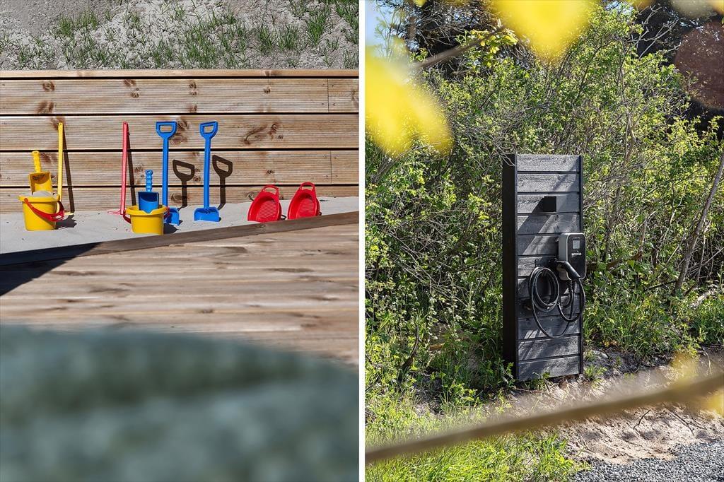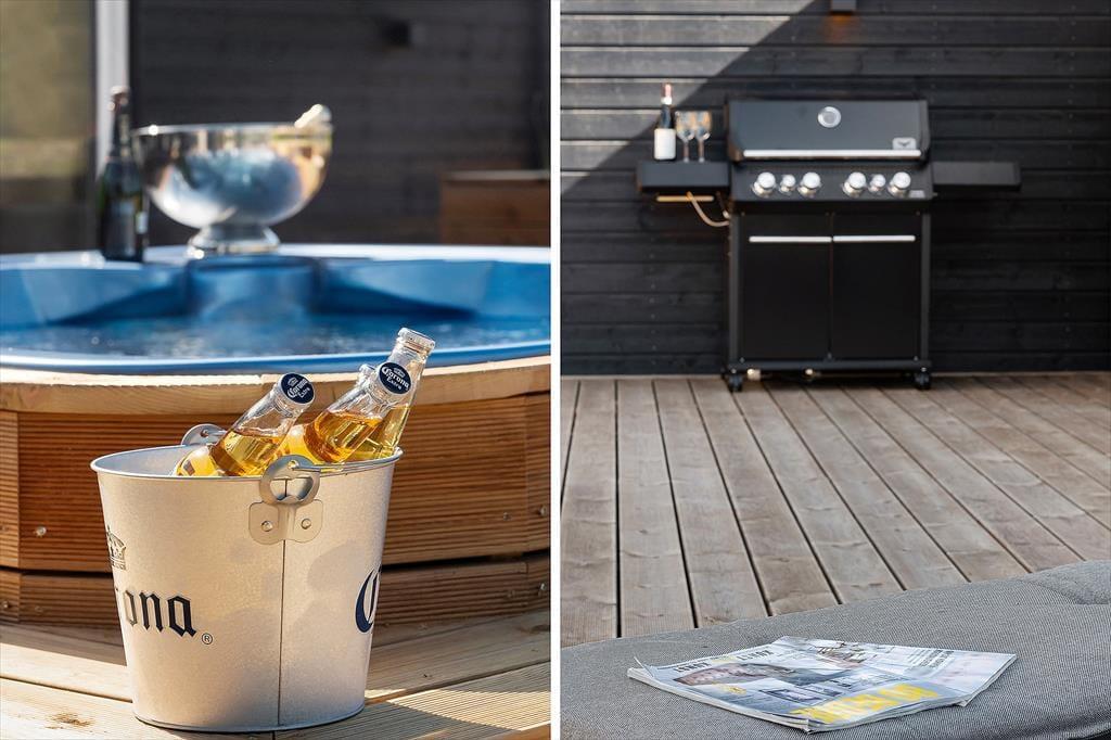 Die Außenbereiche des Ferienhauses sind etwas ganz Besonderes. Die abgeschirmte Holzterrasse erstreckt sich über ganze 350 m² und wird schnell zum Mittelpunkt eures Aufenthalts. Hier gibt es reichlich Platz zum Entspannen und Spielen – und dank der geschlossenen Bauweise können sich auch die Kleinsten sicher bewegen. Beginne den Tag mit einer ruhigen Tasse Kaffee in der Morgensonne, mach es dir mit einem guten Buch auf einer Sonnenliege bequem oder versammle die Familie zum Grillen unter freiem Himmel, während sich der Duft von Sommer und Grillgut in der Luft ausbreitet. Wenn die Dunkelheit hereinbricht, bietet es sich an, den Tag mit einem Bad im warmen Außenwhirlpool ausklingen zu lassen. Ganz gleich zu welcher Jahreszeit oder bei welchem Wetter – die Terrasse und die zahlreichen Outdoor-Einrichtungen bieten den perfekten Rahmen für bleibende Urlaubserinnerungen.