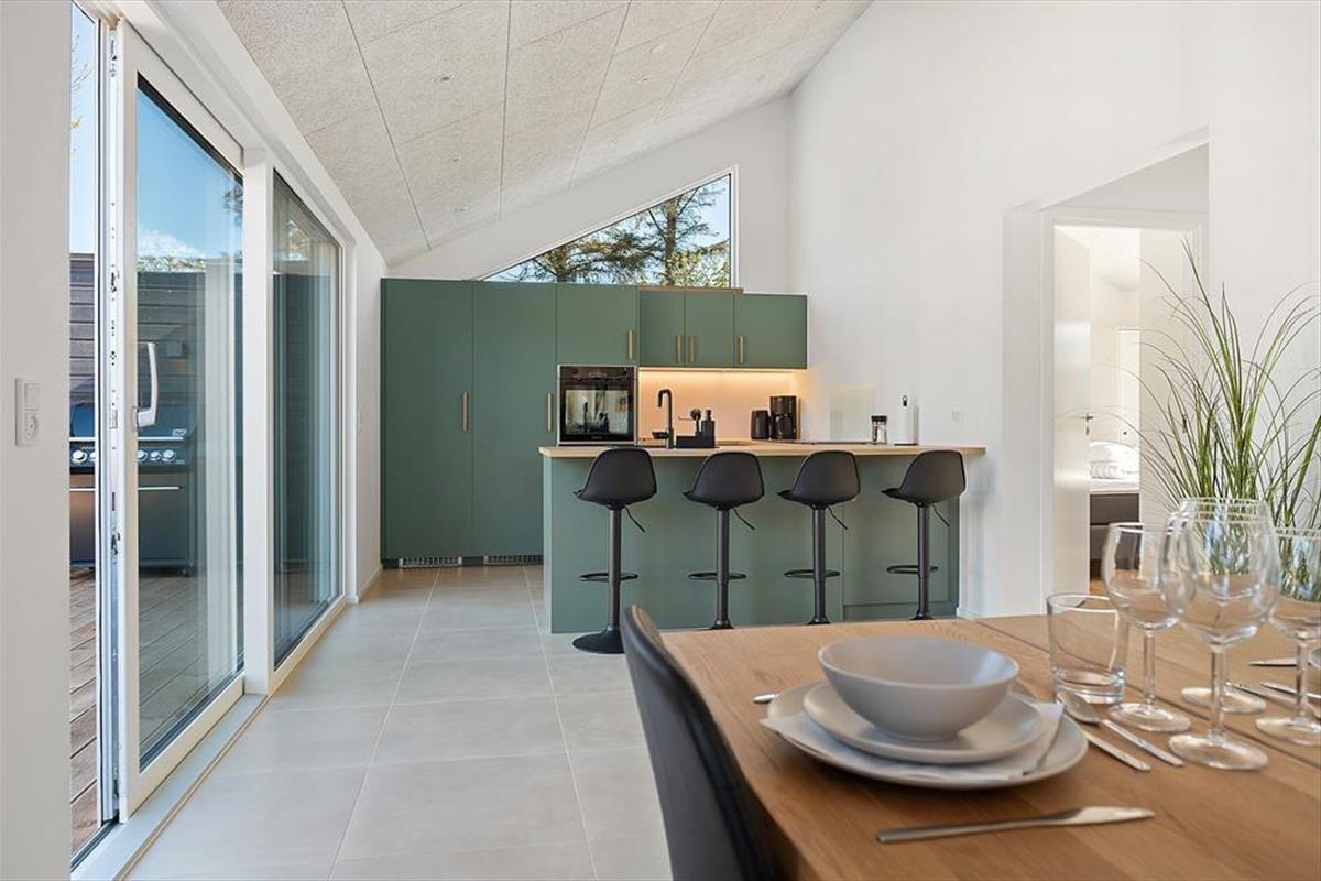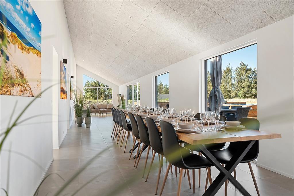 Im Inneren ist alles auf ein gelungenes Urlaubserlebnis ausgerichtet. Das Ferienhaus strahlt Qualität und modernen Komfort aus und ist perfekt auf Urlaube mit vielen Personen zugeschnitten – sei es die ganze Familie, mehrere befreundete Paare oder sogar drei Generationen. Die hellen Räume laden zum Beisammensein ein, und der offene Wohnbereich schafft den perfekten Rahmen für Kochen, Spielen oder gemütliche Abende. Die gut ausgestattete Küche ist offen mit dem Wohnzimmer verbunden, sodass du beim Kochen trotzdem am Geschehen teilhaben oder den Kindern beim Spielen zusehen kannst. Wenn ihr richtig abschalten wollt, könnt ihr eine Runde in der Sauna oder im Whirlpool auf der Terrasse genießen. Für die Energiegeladenen bietet der Aktivitätsraum mit Billardtisch und Airhockey eine tolle Gelegenheit, sich auf unterhaltsame und ungezwungene Weise – unabhängig vom Alter – zu messen.