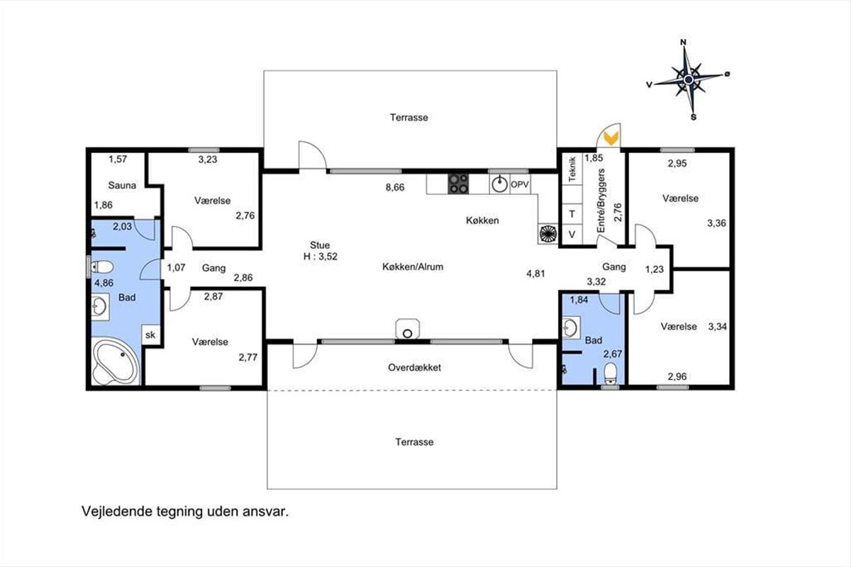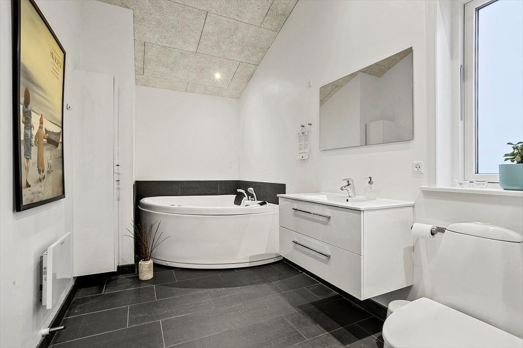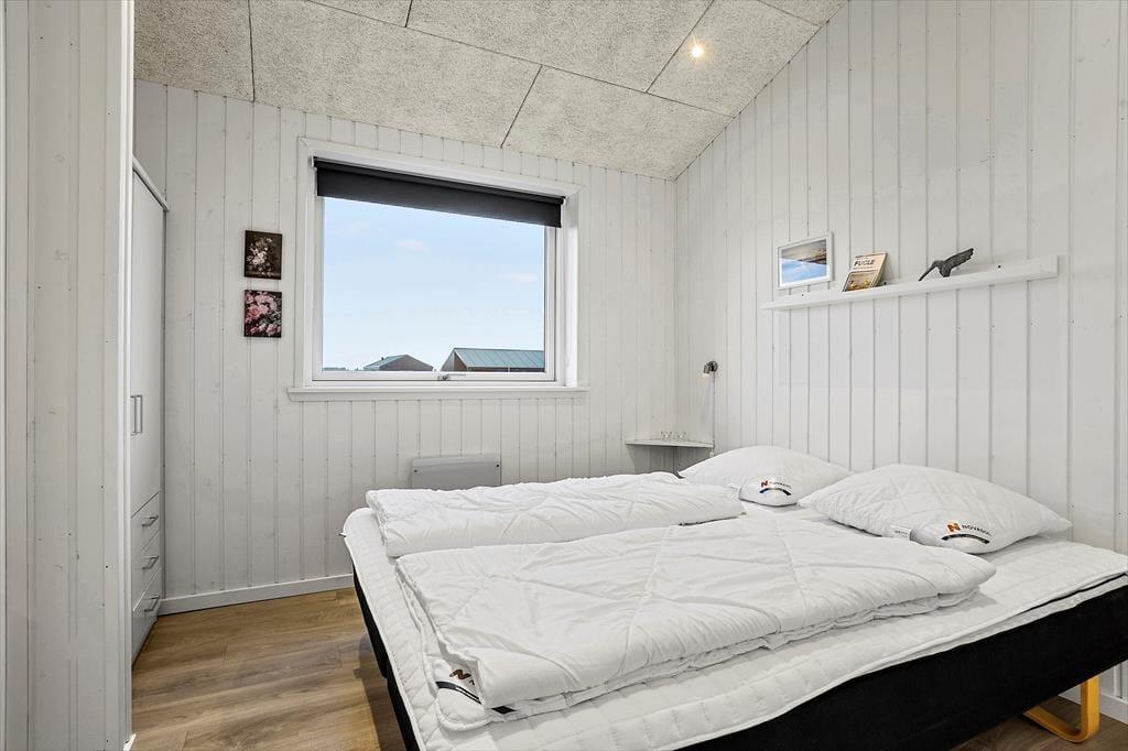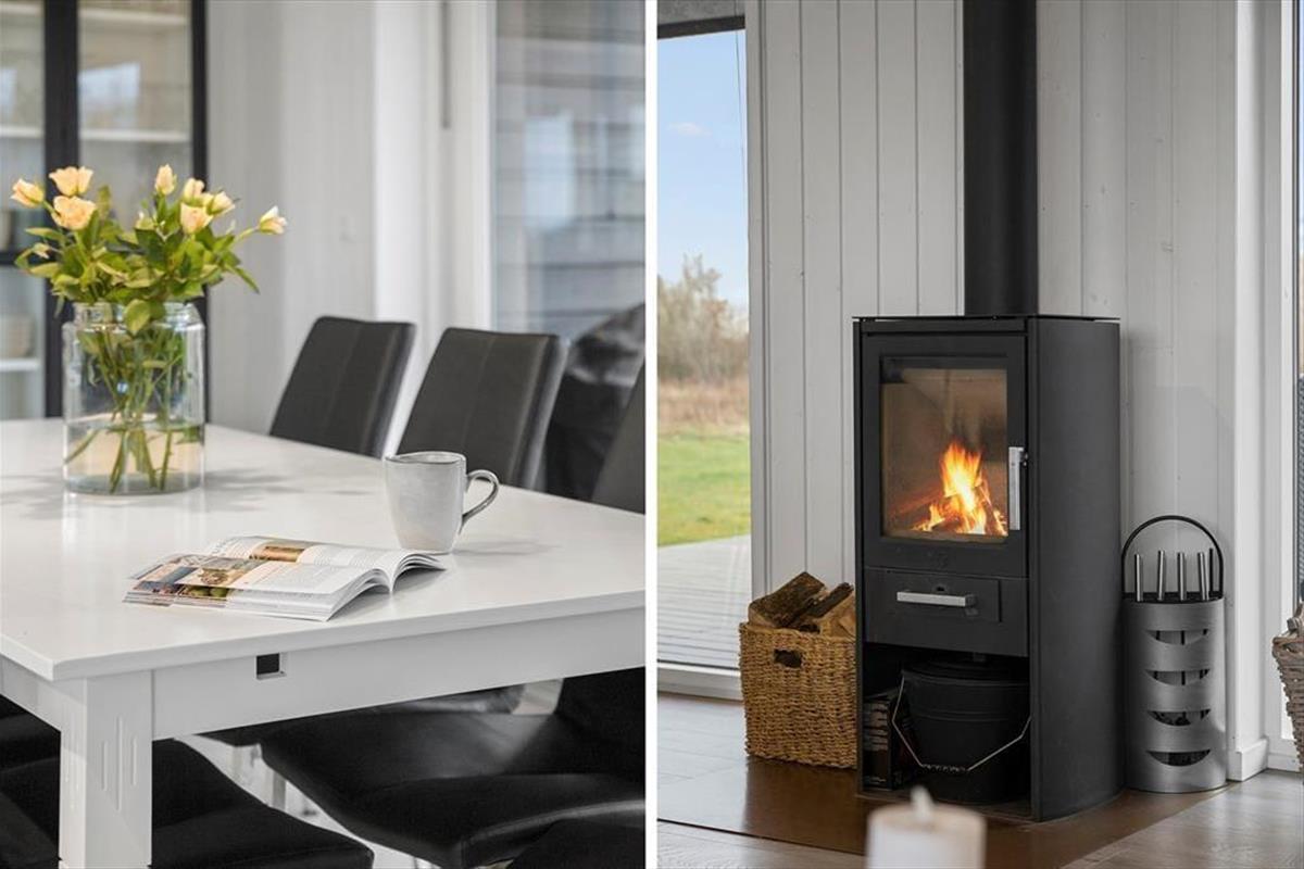 Das Ferienhaus ist hell und modern eingerichtet – mit Fokus auf Gemeinschaft und Wohlbefinden. Die schicke Küche ist offen mit dem Wohnzimmer verbunden, sodass du mit den Zutaten des Sommers zaubern kannst und gleichzeitig Teil des Gesprächs und der Geselligkeit bleibst. Das Wohnzimmer ist mit großen Fensterpartien ausgestattet, die das Tageslicht und den Blick auf den See hereinlassen – und an kühlen Tagen ist es besonders gemütlich, den Kamin anzuzünden und die wohlige Wärme und das Knistern des Feuers zu genießen, während du vollkommen abschaltest. Das Haus bietet vier schöne Schlafzimmer und zwei Badezimmer und ist somit ideal für Familien oder Freundesgruppen, die Wert auf viel Platz legen. Eines der Badezimmer ist mit sowohl Whirlpool als auch Sauna ausgestattet – perfekt, um sich nach einem langen Tag an der frischen westjütländischen Luft zu verwöhnen. Hier kannst du vollkommen entschleunigen und einen Urlaub voller Ruhe, Nähe und Komfort erleben.