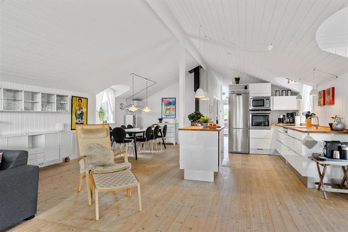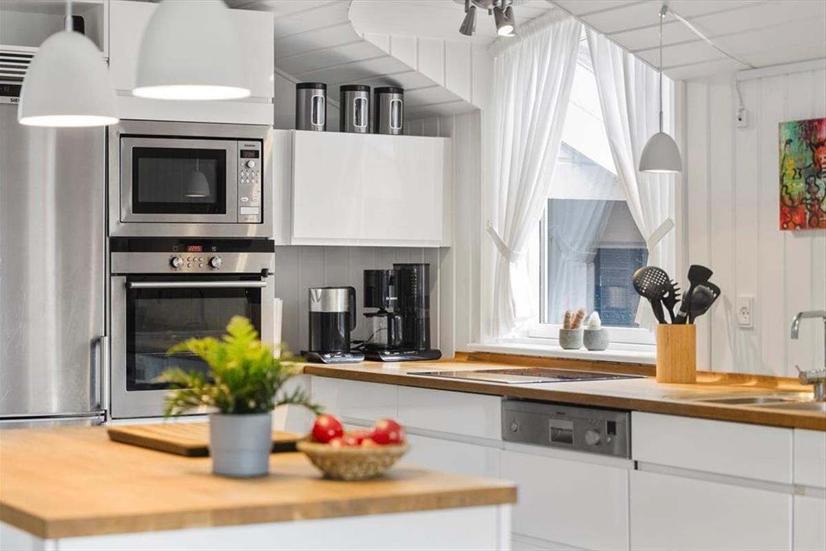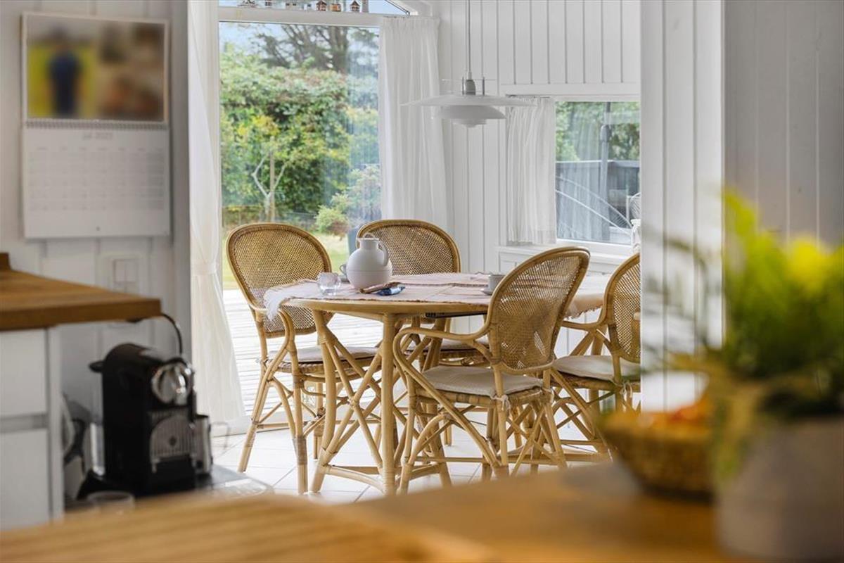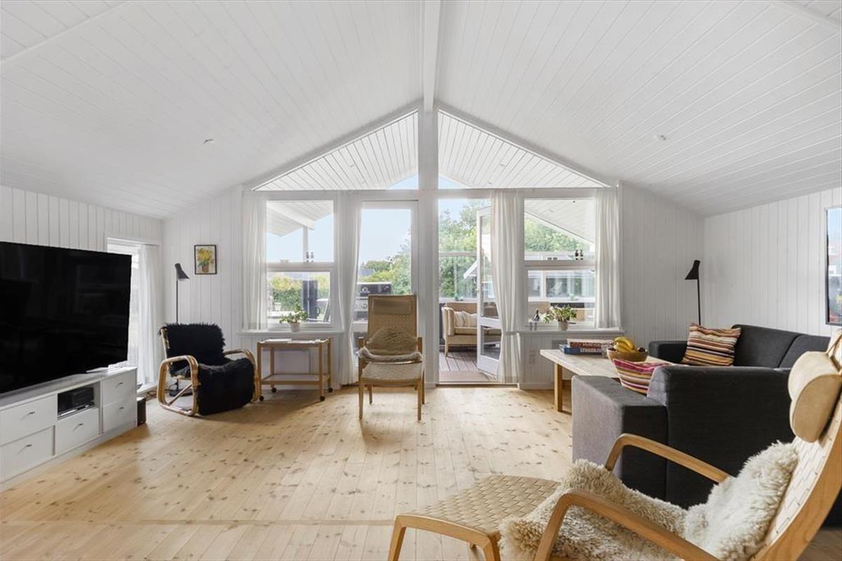 Das Ferienhaus ist durchdacht eingerichtet, sodass das Licht hereinströmt und jeder Quadratmeter optimal genutzt wird. Die hellen Räume schaffen eine leichte und einladende Stimmung, und von zwei der Schlafzimmer kannst du direkt auf die Terrasse treten und den Tag unter freiem Himmel beginnen. Eines der Zimmer verfügt sogar über ein elektrisch verstellbares Doppelbett, sodass der Komfort auch in den Ruhephasen auf höchstem Niveau ist. Küche und Wohnzimmer sind in einem offenen Wohnbereich zusammengefasst, in dem Gespräche und gemeinsames Beisammensein ihren Platz finden, während das Essen zubereitet wird. Von hier aus gelangst du in einen gemütlichen, geschlossenen Wintergarten, der die Saison verlängert und es ermöglicht, die Natur auch an kühleren Tagen zu genießen.