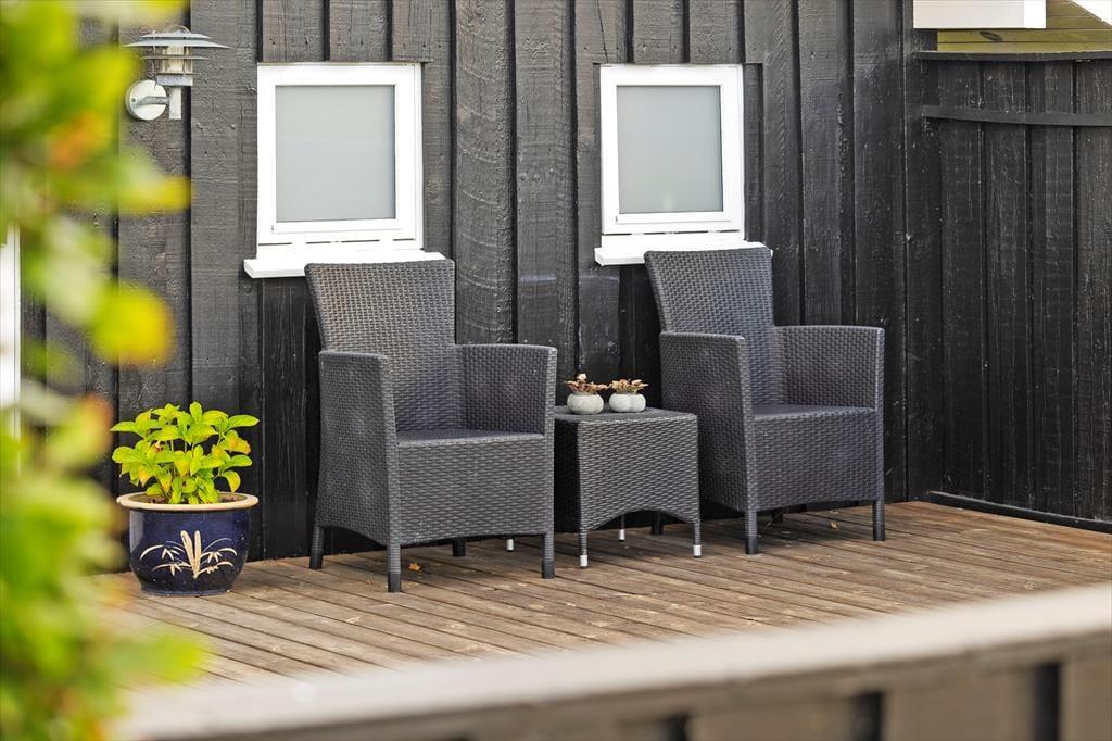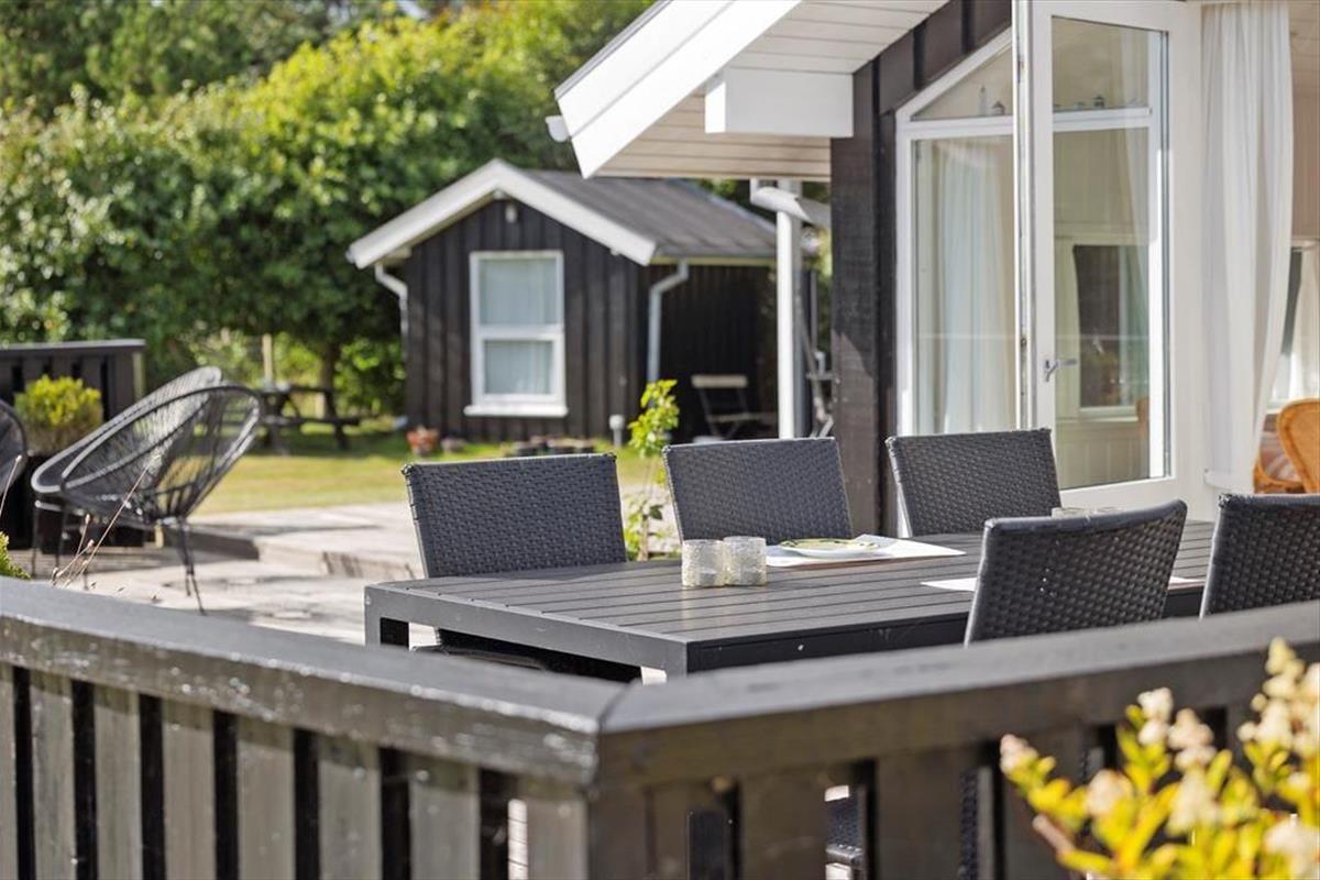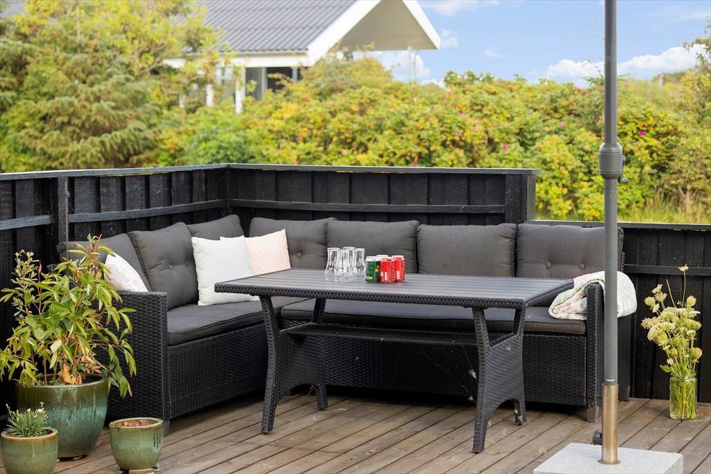 Die vielen Terrassen des Ferienhauses laden dazu ein, den Urlaub von morgens bis abends unter freiem Himmel zu verbringen. Mach es dir in einem der bequemen Loungemöbel mit einer Tasse Kaffee gemütlich, spüre die frische Meeresluft und lausche dem Gesang der Vögel. Auf dem großen Grundstück haben die Kinder Platz zum freien Spielen, während die Erwachsenen je nach Lust und Laune ein sonniges Plätzchen oder einen schattigen Winkel finden. Vom Wintergarten gelangst du direkt auf die Terrasse, wo sich die Mahlzeiten im Freien besonders gut genießen lassen. Als Gast hast du zudem Zugang zum Gemeinschaftshaus des Gebietes, in dem dir ein Hallenbad, eine Sauna, eine Waschmaschine und ein Trockner zur Verfügung stehen. Für die Kleinsten ist der Spielplatz am Gemeinschaftshaus ein sicherer Hit.