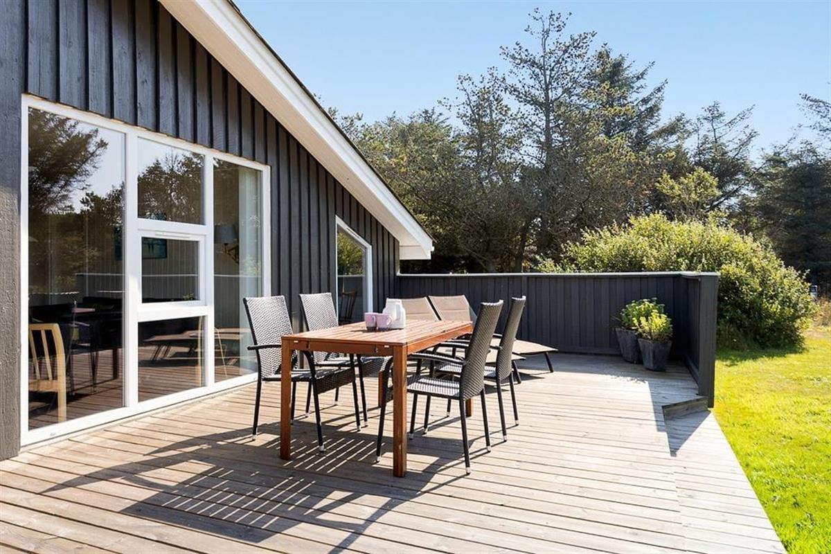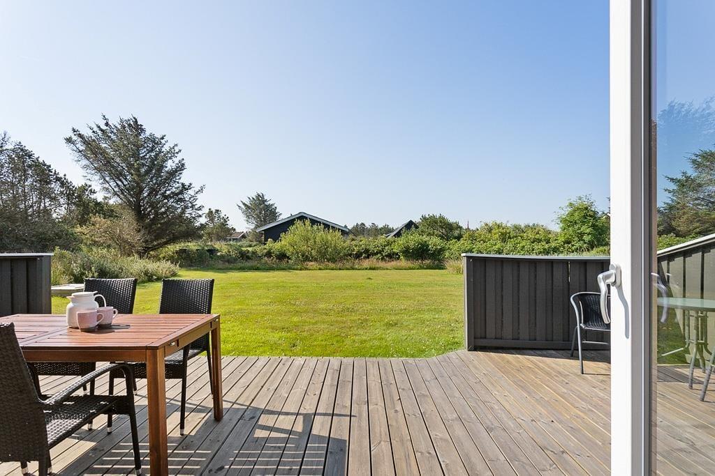 Das Grundstück rund um das Ferienhaus ist groß und einladend, sodass reichlich Platz für Ballspiele, Spiel und Aktivitäten im Freien vorhanden ist. Auf den gemütlichen Terrassen findest du immer ein sonniges Plätzchen, kannst dich mit einer Tasse Kaffee niederlassen oder die Familie zu einem Grillabend versammeln, während die Abendsonne den Himmel über den Dünen rot färbt. Am Morgen genießt du die Ruhe und den Gesang der Vögel auf der Terrasse mit der ersten Tasse Kaffee, während die Kinder frei auf der Wiese spielen. Dank der guten Terrassenverhältnisse kannst du den ganzen Tag über leicht zwischen Sonne und Schatten wechseln – und zu jeder Jahreszeit ist es einfach, seinen persönlichen Lieblingsplatz im Freien zu finden.