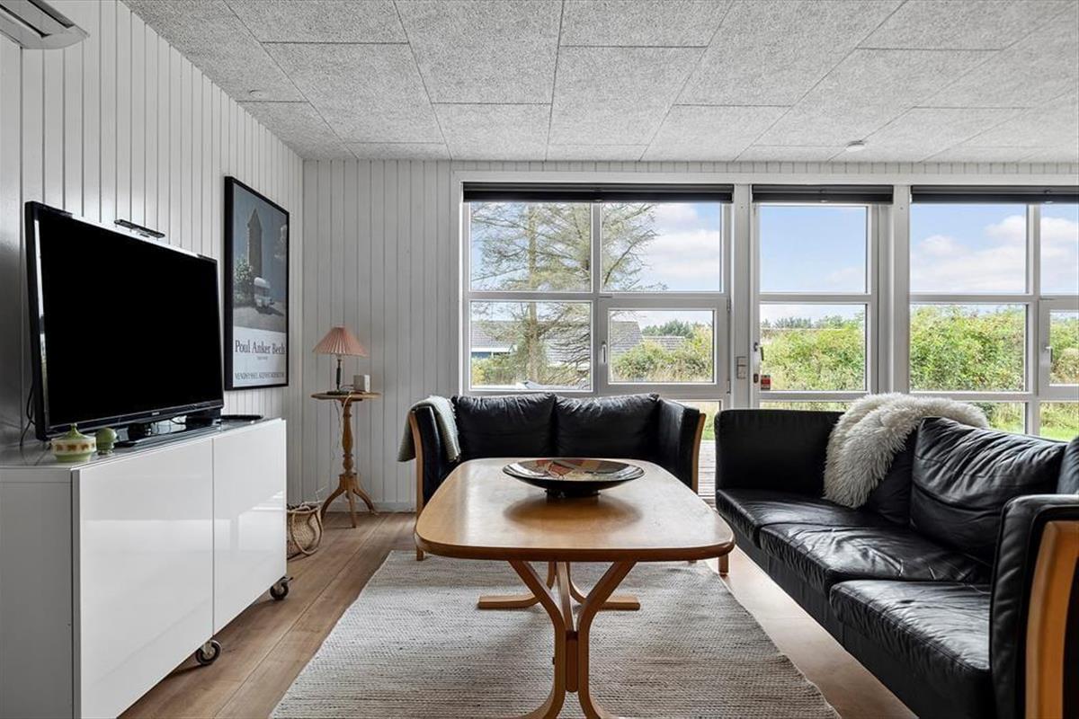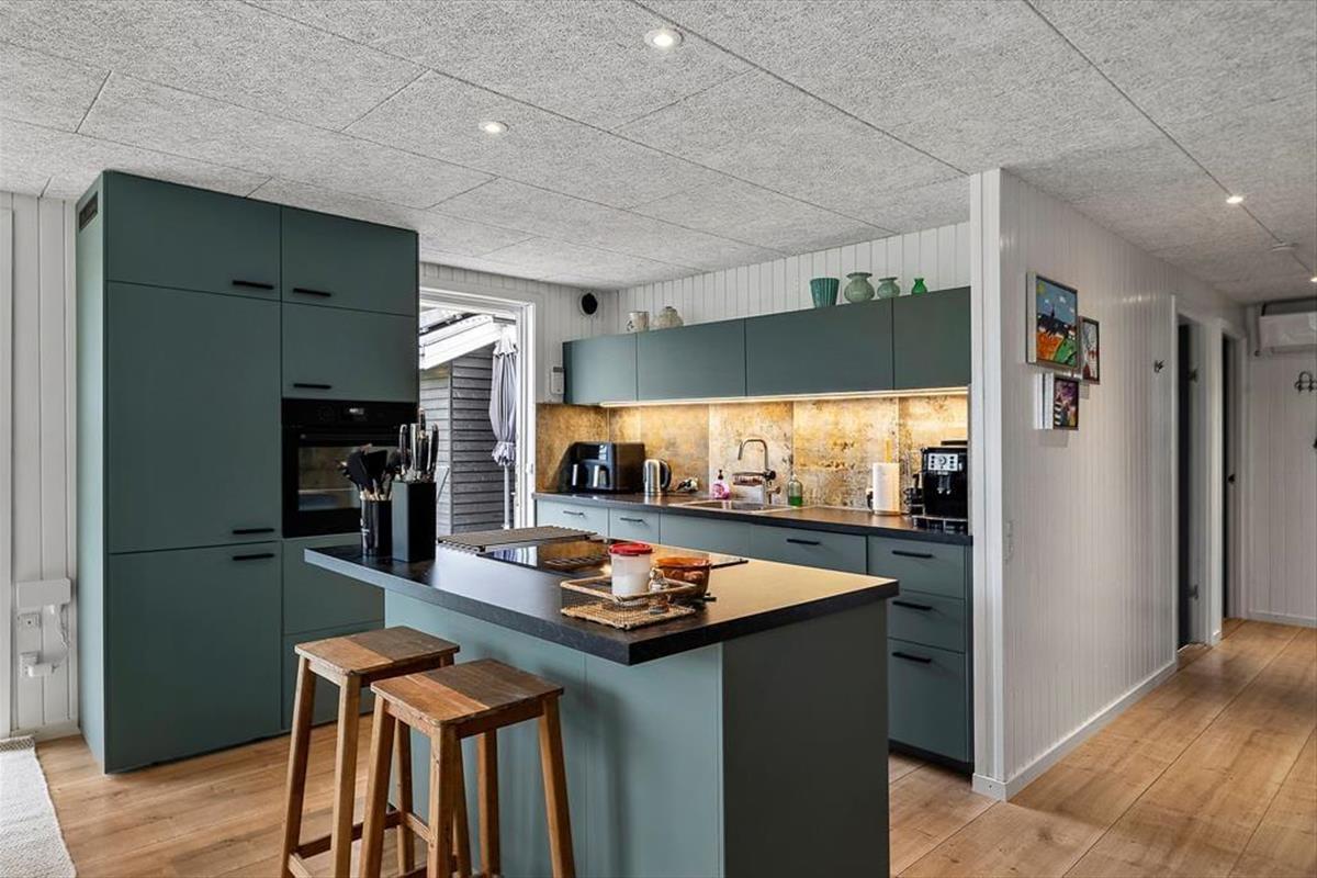 Das Ferienhaus ist in einem einladenden und hellen Stil eingerichtet, wobei sowohl das Wohnzimmer als auch die Küche modernisiert wurden. Die offene Küche ist praktisch für alle, die gerne kochen – hier bist du mitten im Geschehen, während der Rest der Familie im Wohnzimmer entspannt. Große Fensterfronten sorgen für natürliches Licht, und an kühleren Tagen kannst du den Kaminofen anfeuern und die gemütliche Wärme genießen. Das Haus verfügt über zwei schöne Schlafzimmer sowie ein Badezimmer, sodass die ganze Familie Platz zur Erholung hat. Der neu renovierte Annex bietet euch zusätzliche Flexibilität – hier findest du sowohl einen Aktivitätsraum, in dem Groß und Klein Spaß haben können, als auch einen Schlafplatz, der es ideal macht, die Großeltern oder gute Freunde mit in den Urlaub zu nehmen.