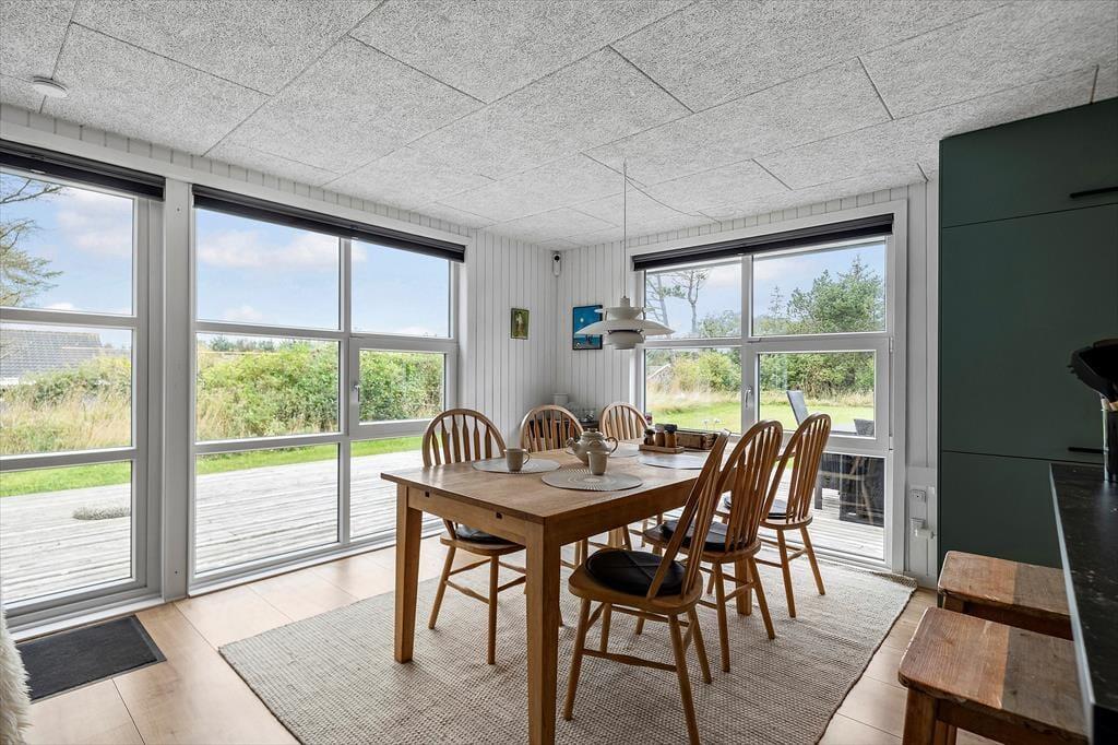 Das Ferienhaus liegt im attraktiven Ferienhausgebiet Grønhøj, wo Natur und Strand die größten Attraktionen sind. In wenigen Minuten erreichst du zu Fuß den Strand, wo weicher Sand und rauschende Wellen warten – perfekt für ein erfrischendes Bad, einen Spaziergang entlang der Küste oder zum Spielen mit den Kindern am Wasser. Die Region ist bekannt für ihre wunderschöne Natur. Du kannst zum Beispiel einen Ausflug in die Kettrup Berge machen oder den ikonischen Leuchtturm Rubjerg Knude Fyr besuchen, der nur eine kurze Autofahrt entfernt liegt. Auch Løkken ist nicht weit entfernt und lockt mit gemütlichen Geschäften, Cafés und Restaurants, in denen du die lebhafte Urlaubsstimmung erleben kannst. Wenn Kinder mit dabei sind, ist ein Tag im Freizeitpark Fårup Sommerland ebenfalls eine gute Idee – und der beliebte Park liegt nur eine kurze Autofahrt vom Haus entfernt.