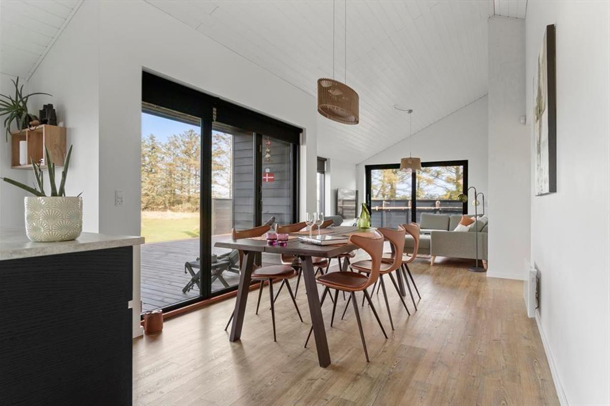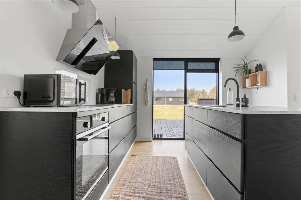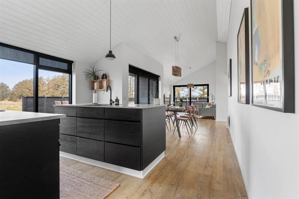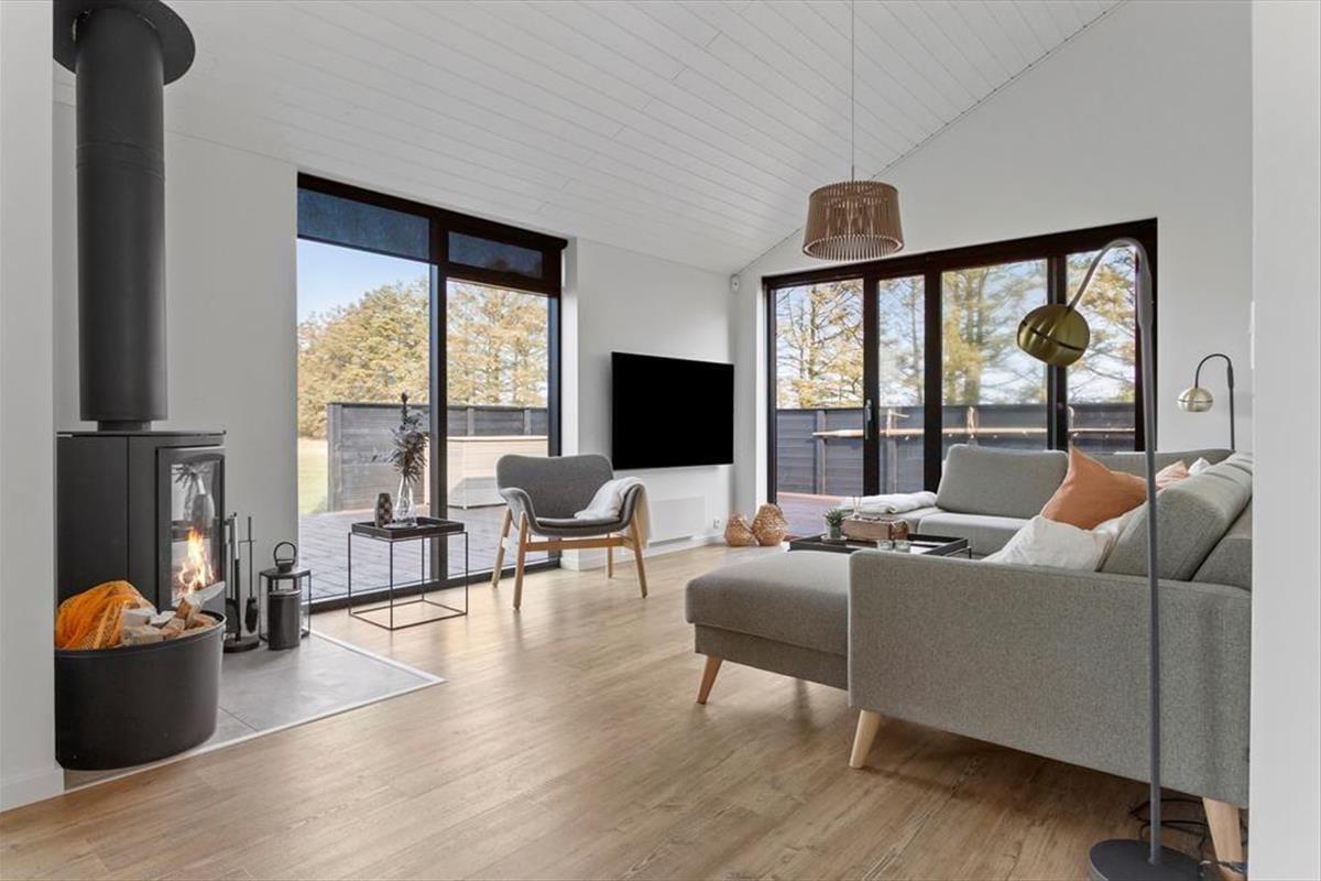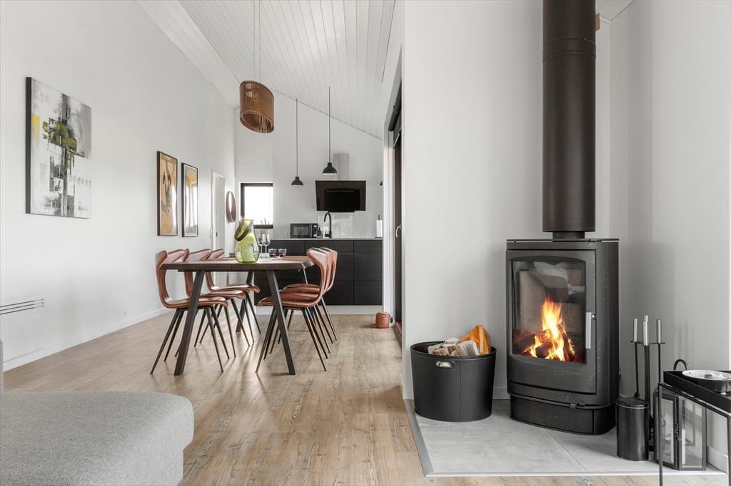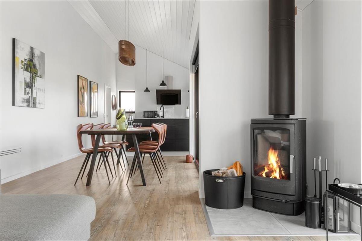 Das Ferienhaus wurde 2018 gebaut und präsentiert sich hell, modern und mit Sinn für Stil und Funktionalität eingerichtet. Das Herzstück des Hauses ist das geräumige Wohnzimmer, das in offener Verbindung mit einer gut ausgestatteten Küche liegt. Hier kannst du am Herd stehen und trotzdem Teil des Gesprächs am Esstisch oder der Gemütlichkeit auf dem Sofa sein. Die großen Fensterfronten lassen viel Licht herein und schaffen eine angenehme Atmosphäre, und an kühleren Tagen bietet es sich an, den Holzofen anzuzünden, während die Ruhe einkehrt. Das Ferienhaus verfügt über drei gute Schlafzimmer, die es leicht machen, nach einem Tag mit Strandspaziergängen und Ausflügen zur Ruhe zu kommen. Das Badezimmer ist einladend und modern eingerichtet – und als zusätzlichen Komfort gibt es eine Fußbodenheizung, die den Start in den Tag besonders angenehm macht.