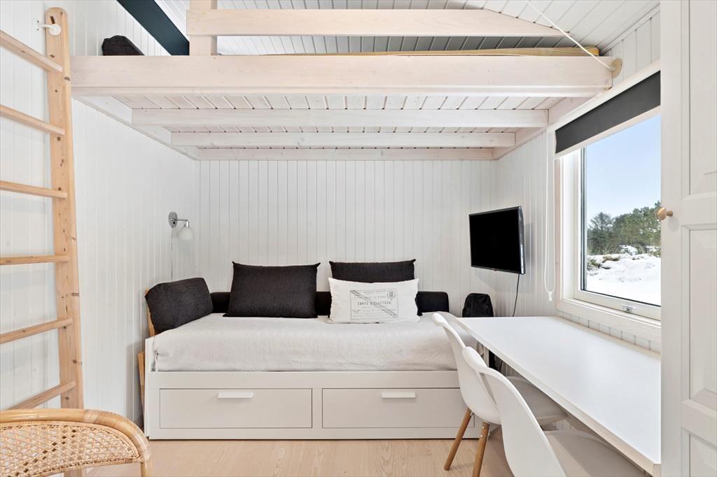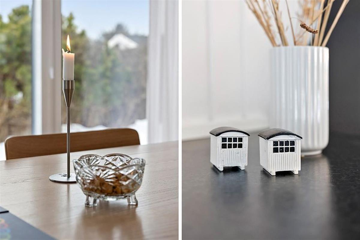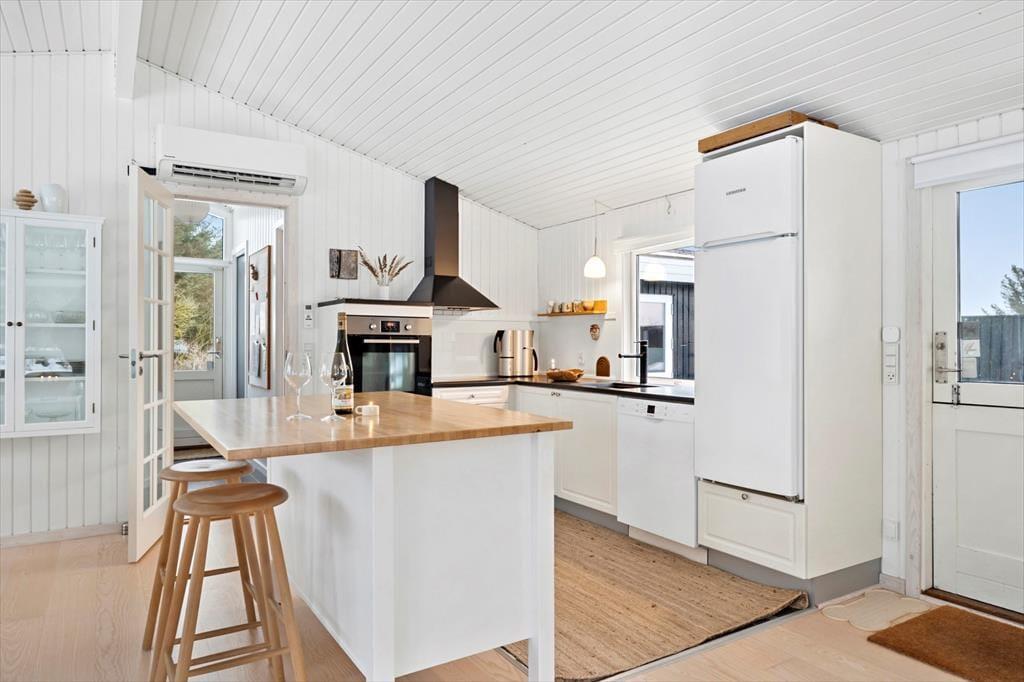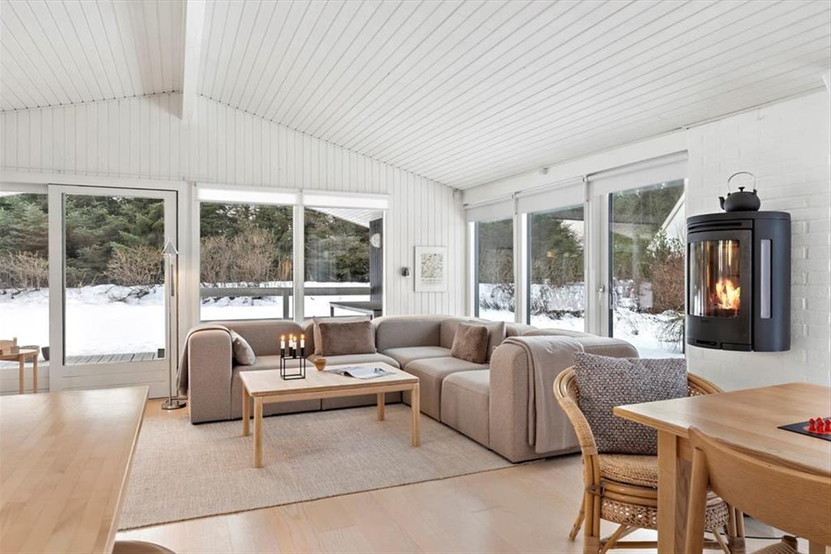 Das Ferienhaus ist mit Fokus auf Licht, Gemütlichkeit und gute Rahmenbedingungen für gemeinsame Zeit eingerichtet. Das Herz des Hauses ist das Wohnzimmer, das in offener Verbindung mit der stilvollen und geräumigen Küche liegt. Hier kannst du mit lokalen Zutaten zaubern, während am Esstisch angeregt geplaudert wird, oder ihr macht es euch gemeinsam auf dem Sofa gemütlich und lasst den knisternden Kaminofen am Abend die Stimmung bestimmen. Der Grundriss bietet reichlich Platz für die Familie mit zwei schönen Schlafzimmern, einem gemütlichen Annex sowie zwei modernen Badezimmern. Das ganze Haus strahlt eine entspannte Ferienhausatmosphäre aus, in der man sich vom ersten Moment an zu Hause fühlt.