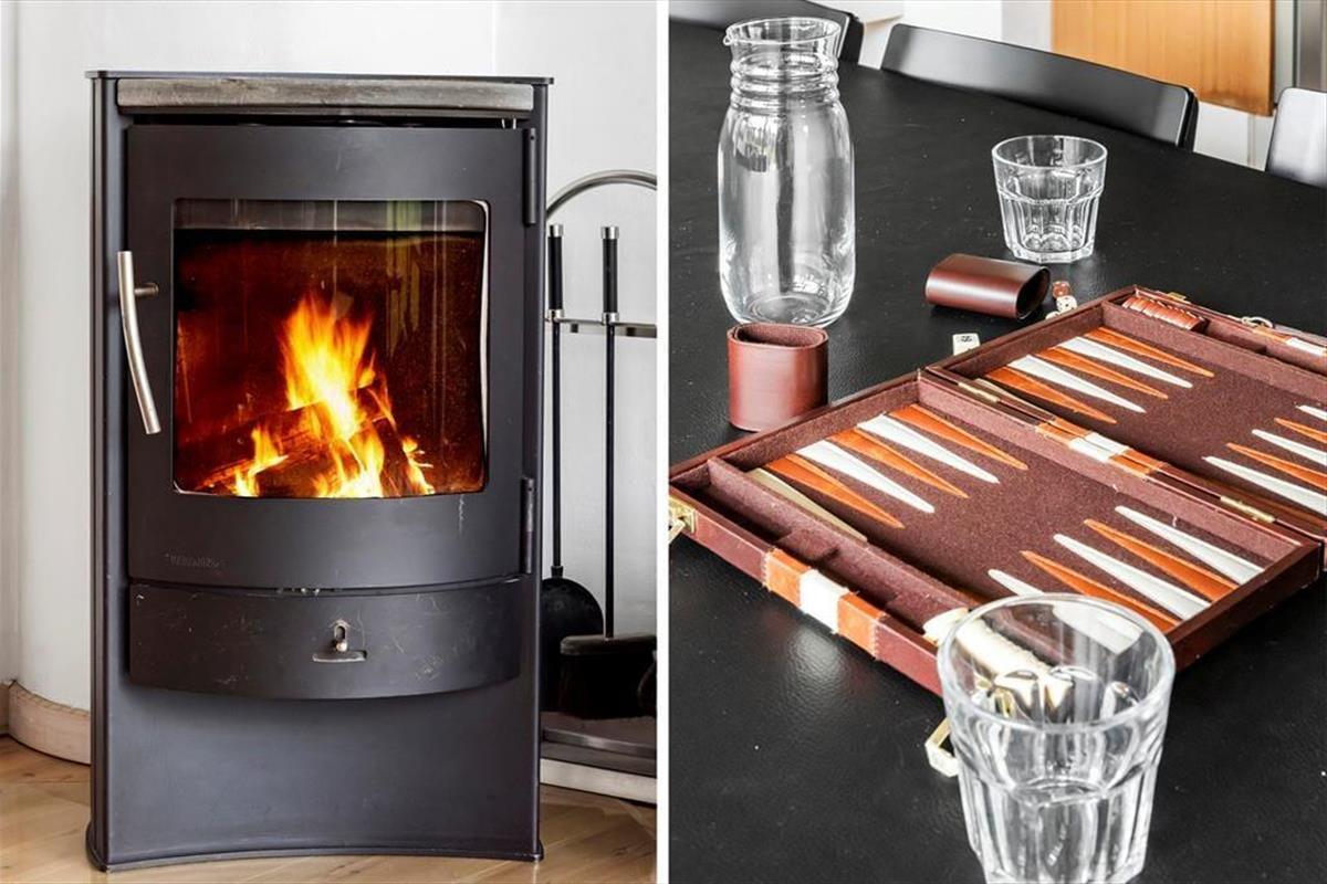 Das Ferienhaus ist äußerst gepflegt, hell eingerichtet und mit hohen Decken. Wenn zwei Familien gemeinsam reisen, können sie sich etwas aufteilen, da jeder Teil des Hauses zwei Schlafzimmer und ein Badezimmer/WC bietet. Die Küche ist gut ausgestattet mit allen möglichen Haushaltsgeräten und Hilfsmitteln und befindet sich in der Mitte des Hauses zusammen mit dem Essbereich und dem Wohnzimmer, nur durch eine halbe Wand und eine Stufe getrennt. Im Wohnzimmer kann man auf dem Sofa sitzen und die Aussicht durch die großen Fenster von Boden bis Decke genießen, vielleicht bei einem gemütlichen Feuer im Kamin an den kühleren Tagen. Das große Badezimmer hat sowohl ein Spa als auch eine Sauna, hier kann man sich nach einem langen Tag am Strand richtig entspannen. Außerdem gibt es ein Bett und einen Stuhl für die kleinsten Kinder sowie eine Waschmaschine und einen Trockner, damit man unterwegs Wäsche und Handtücher waschen kann.