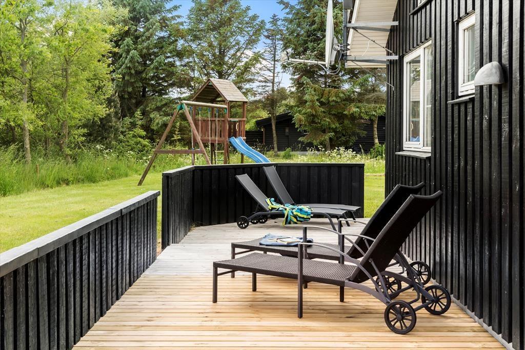 Grønhøj ist ein schönes Naturschutzgebiet mit einem schönen, breiten, weißen Sandstrand. Vom Ferienhaus aus sind es weniger als einen Kilometer bis zum Wasser, und falls das Wetter einmal nicht mitspielt, kann man einen Ausflug ins große subtropische Badeparadies in Blokhus machen. Es gibt auch viele weitere interessante Ausflugsziele in der Nähe: Action House in Løkken, Børglum Kloster oder Rubjerg Knude. Wenn man bereit ist für eine längere Fahrt, empfehlen wir den Aalborg Zoo, Grenen in Skagen, das Oceanarium in Hirtshals oder den Jesperhus Blomsterpark auf Mors.